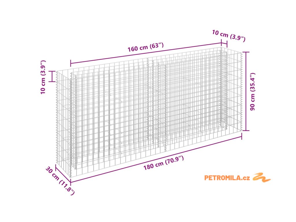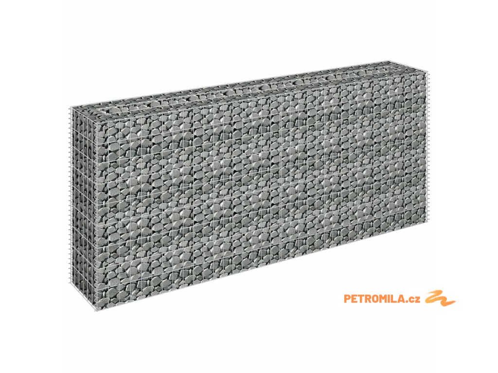 Robustní gabion je designovaný tak, aby ho bylo možné naplnit kameny nebo štěrkem. Gabion je vyrobený z nerezavějící pozinkované oceli, která nepodléhá povětrnostním vlivům, a proto je velmi stabilní a odolný. Síťová mřížka je tvořená svislými a vodorovnými dráty, které jsou ve všech spojích svařené, aby se tak zajistila mimořádná pevnost.