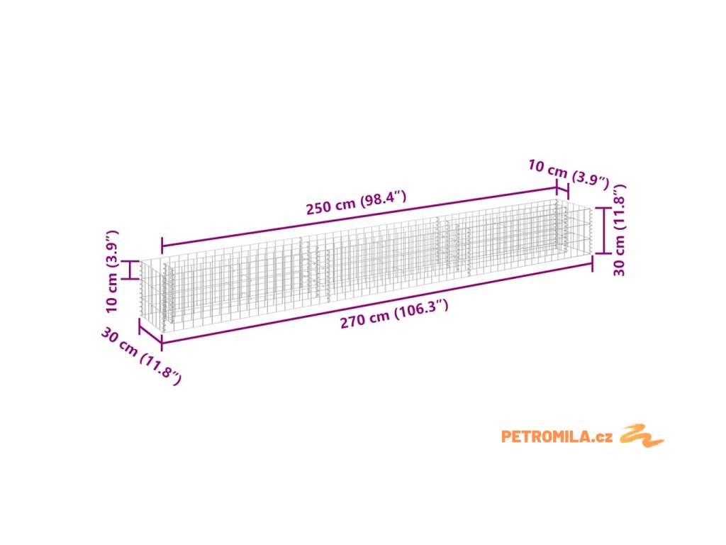 Gabionový vyvýšený záhon pozinkovaná ocel 270 x 30 x 30 cm