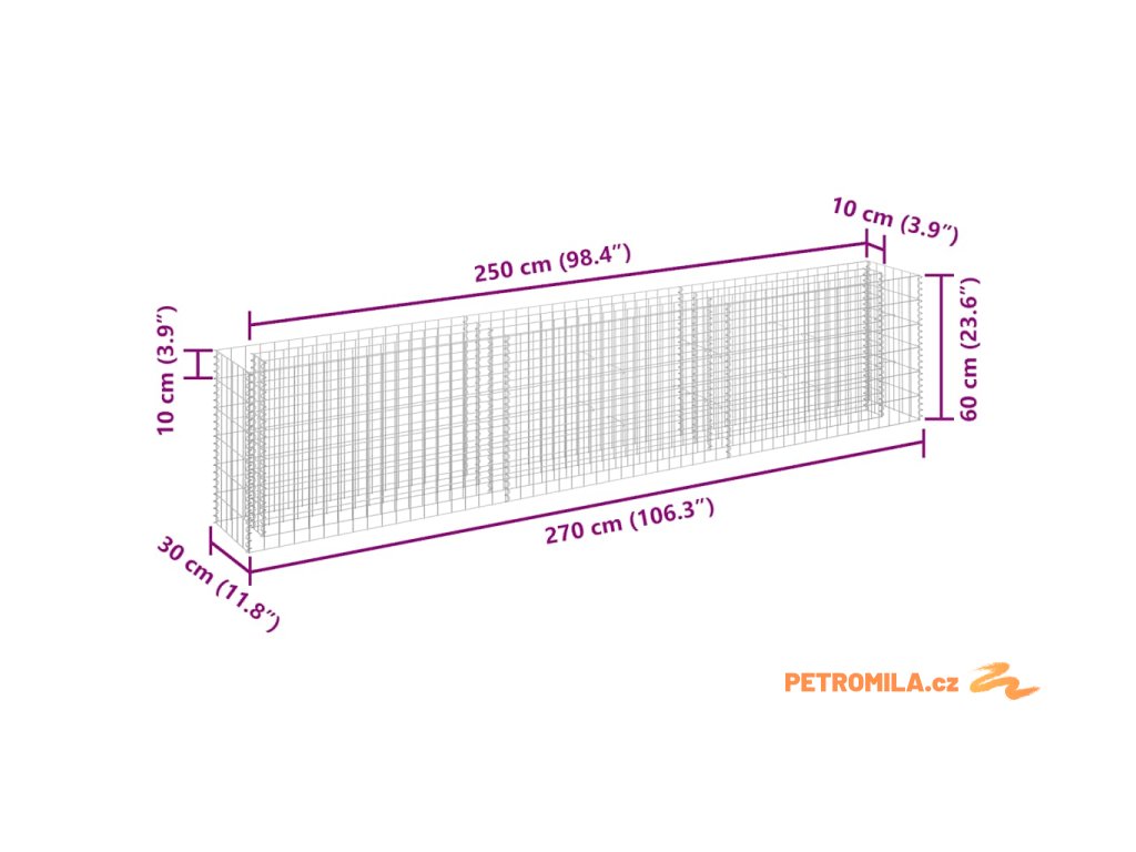 Gabionový vyvýšený záhon pozinkovaná ocel 270 x 30 x 60 cm