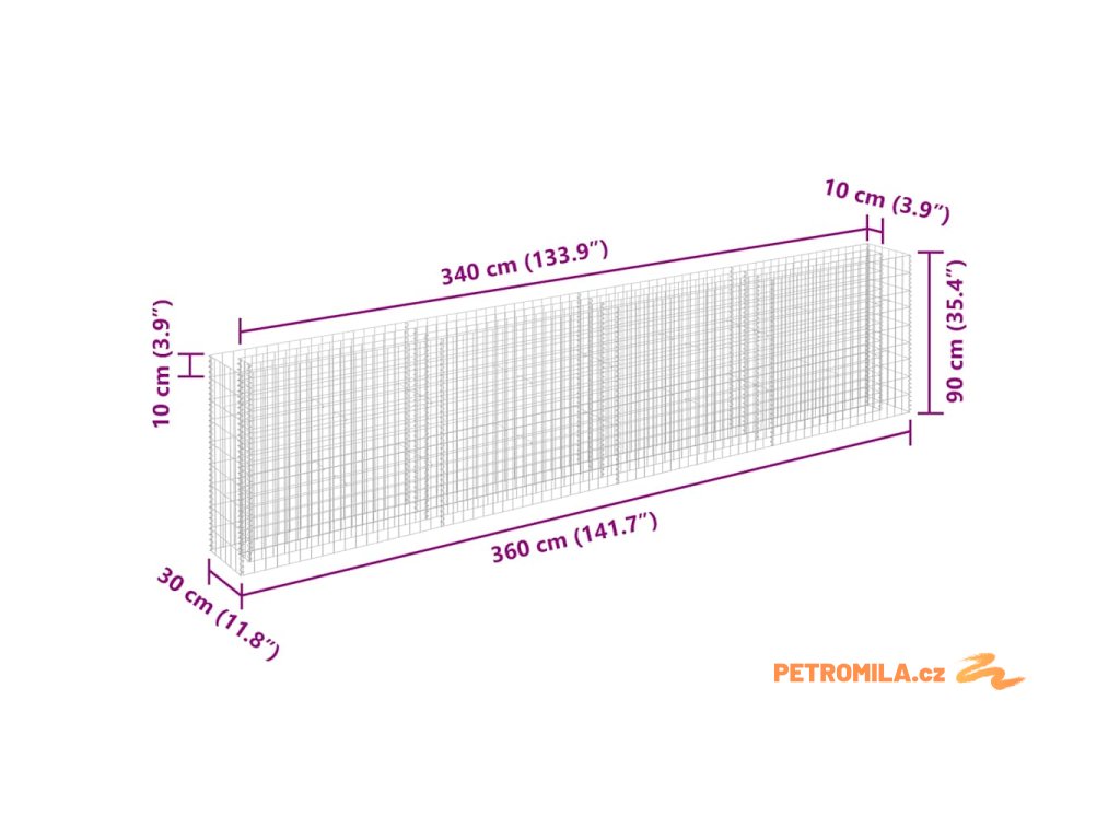 Gabionový vyvýšený záhon pozinkovaná ocel 360 x 30 x 90 cm