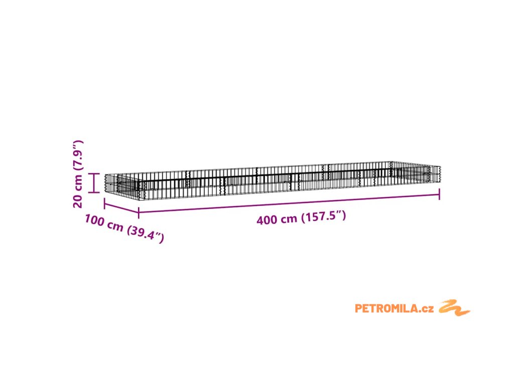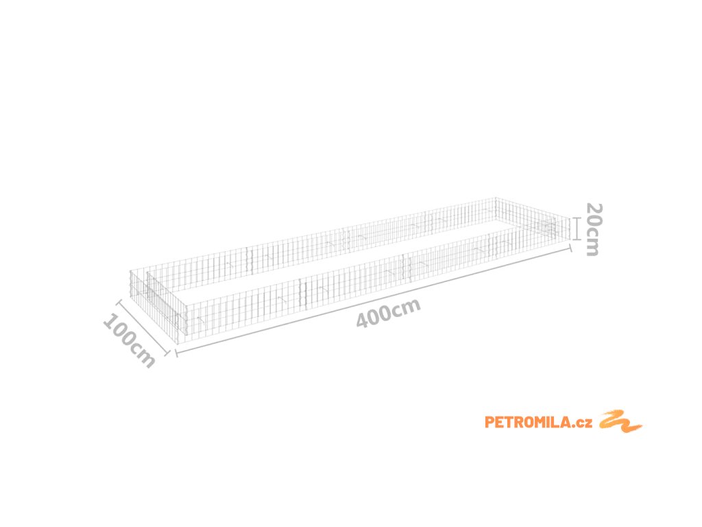 Gabionový vyvýšený záhon pozinkovaná ocel 400 x 100 x 20 cm