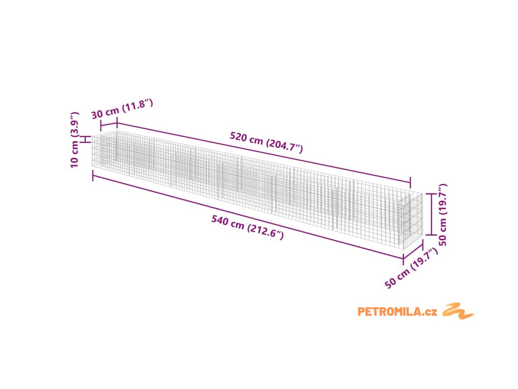 Gabionový vyvýšený záhon pozinkovaná ocel 540 x 50 x 50 cm