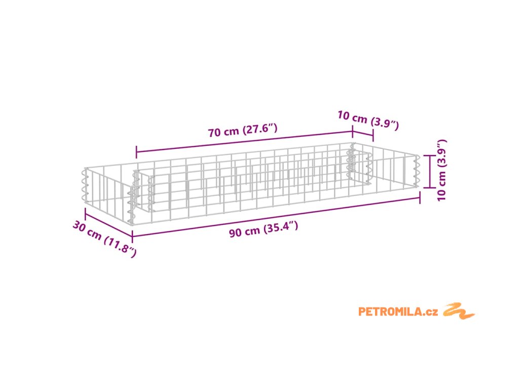 Gabionový vyvýšený záhon pozinkovaná ocel 90 x 30 x 10 cm