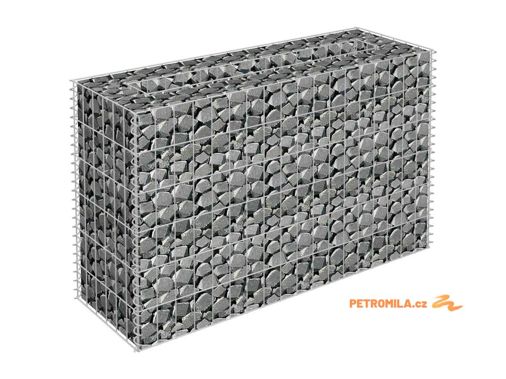 Robustní gabion je designovaný tak, aby ho bylo možné naplnit kameny nebo štěrkem. Gabion je vyrobený z nerezavějící pozinkované oceli, která nepodléhá povětrnostním vlivům, a proto je velmi stabilní a odolný. Síťová mřížka je tvořená svislými a vodorovnými dráty, které jsou ve všech spojích svařené, aby se tak zajistila mimořádná pevnost.