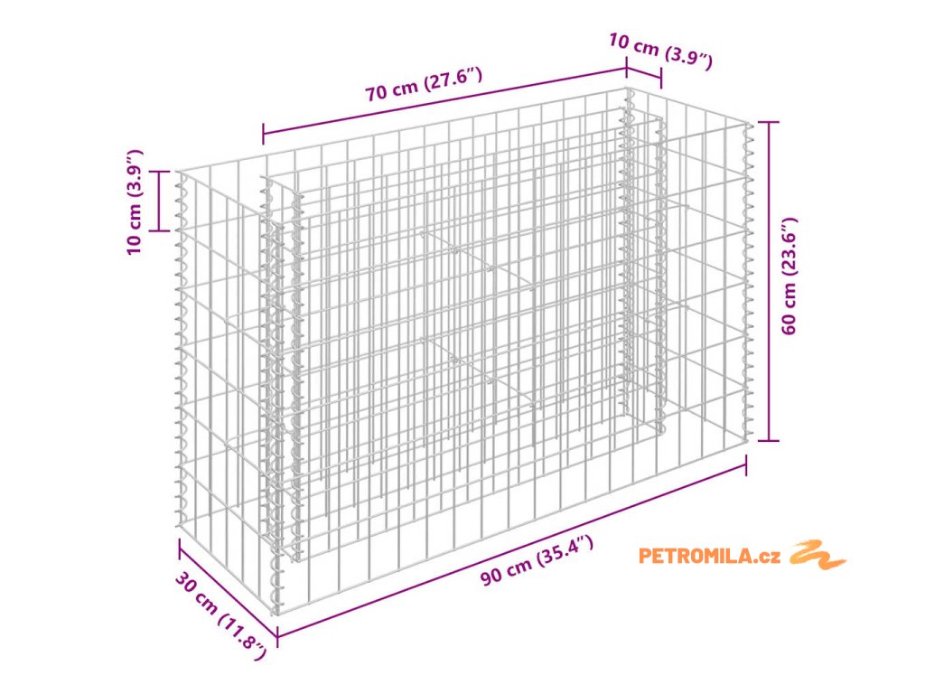 Gabionový vyvýšený záhon pozinkovaná ocel 90 x 30 x 60 cm