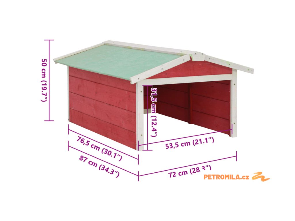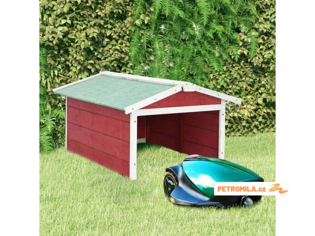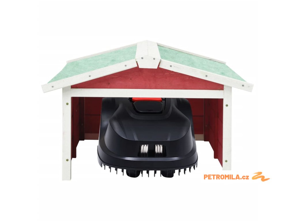 Garáž na robotickou sekačku 72x87x50 cm červená a bílá jedle