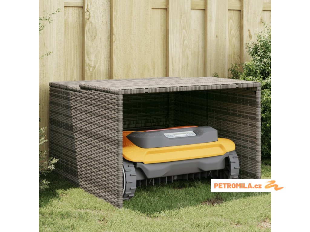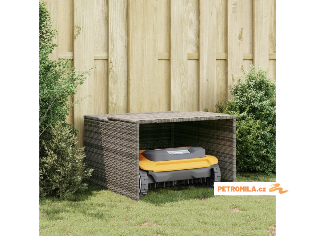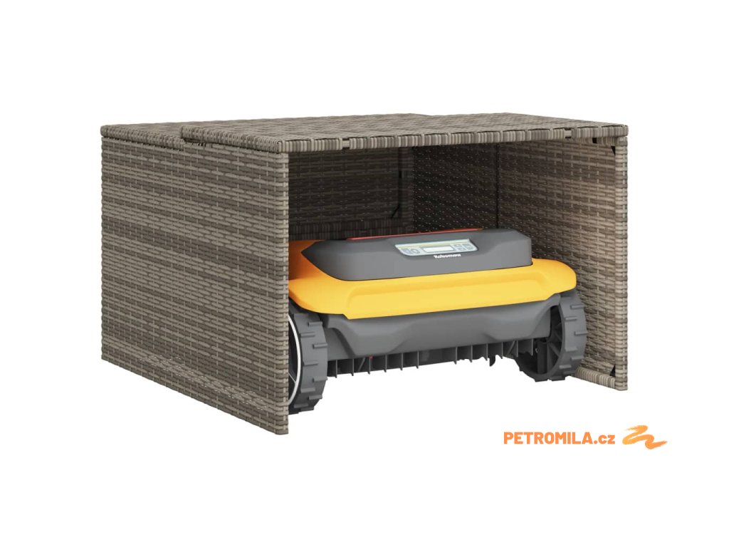 Garáž pro robotickou sekačku šedá 86 x 90 x 52/57 cm polyratan