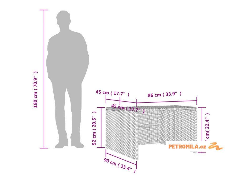 - Materiál: PE ratan, práškově lakovaná ocel, PP deska