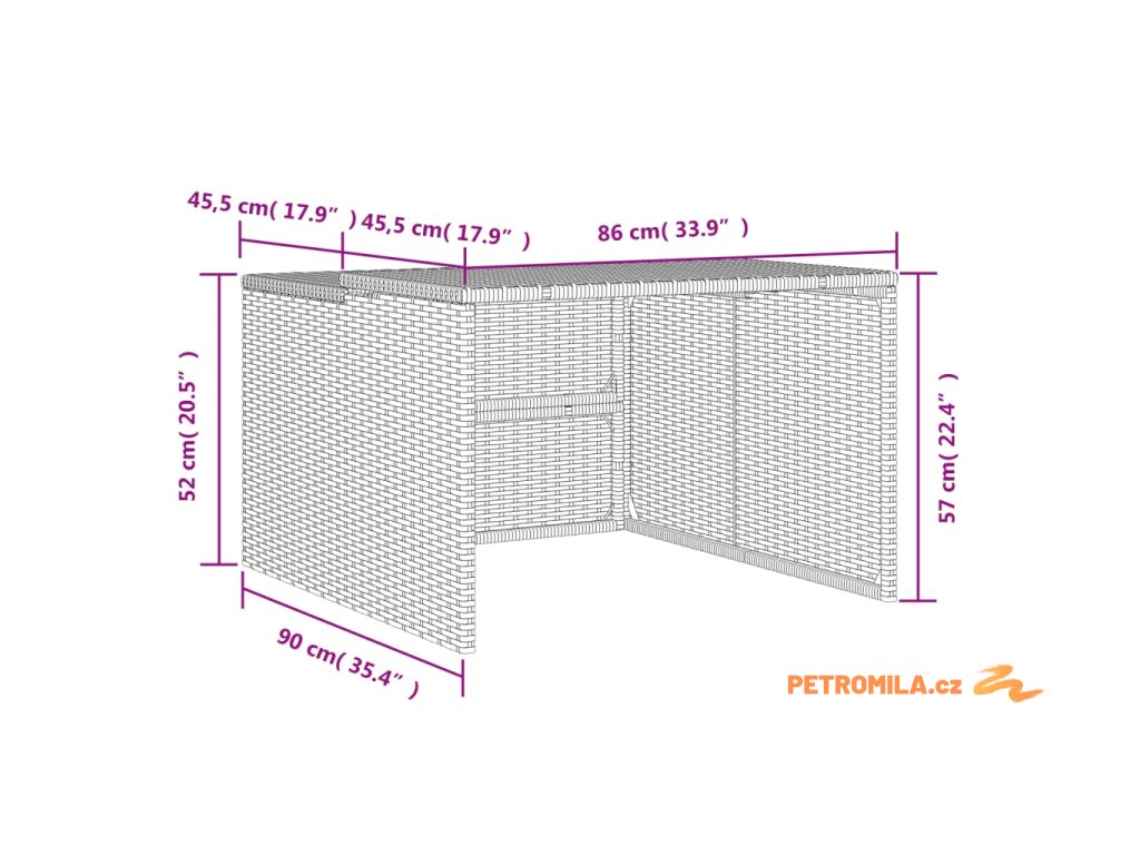 - Celkové rozměry: 86 x 90 x 52/57 cm (Š x H x V)
