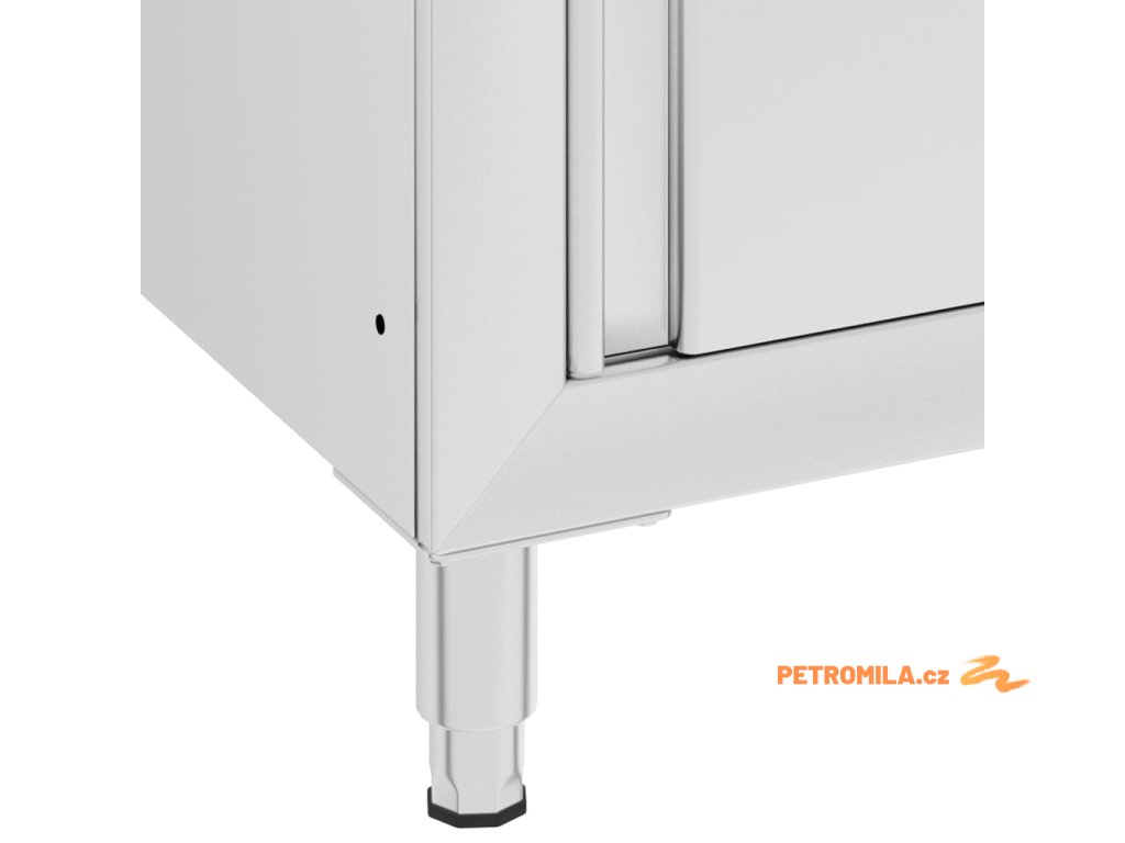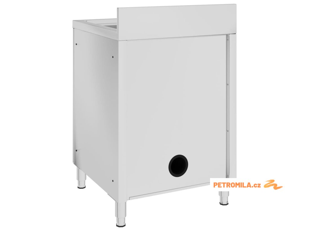 Tato skříňka je vyrobená z kvalitní nerezové oceli a je robustní, antikorozní a snadno se čistí. Spodní skříňka poskytuje dostatek úložného prostoru pro úklidové vybavení a příslušenství. Nastavitelné nožičky umožňují vyrovnat skříňku i na vodorovné ploše. Součástí skříňky je 10 cm vysoký zadní lem a otvor na vodní trubku.