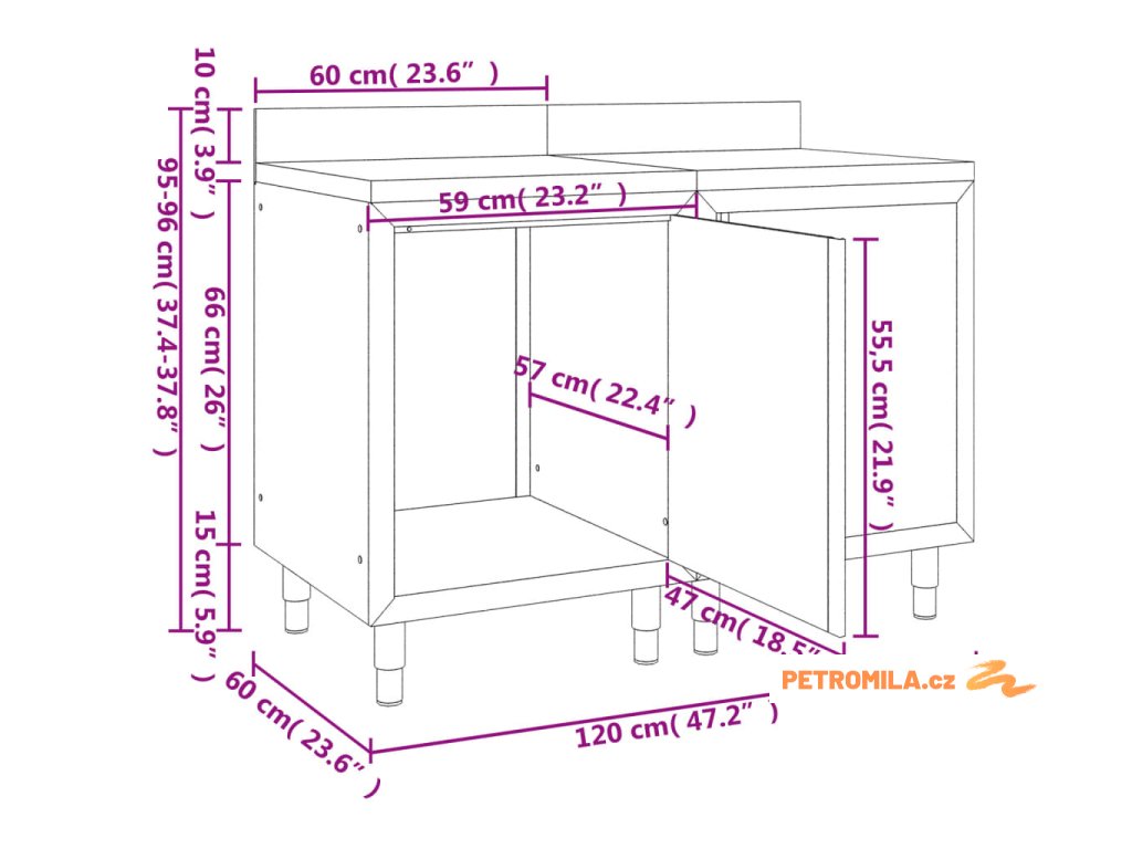 - Celkové rozměry: 120 x 60 x (95–96) cm (D x Š x V)