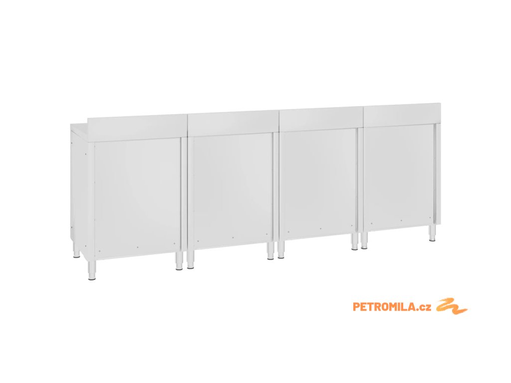 Set gastro skříněk je vyrobený z kvalitní nerezové oceli a je robustní, antikorozní a snadno se čistí. Spodní skříňka poskytuje dostatek úložného prostoru pro úklidové vybavení a příslušenství. Nastavitelné nožičky umožňují vyrovnat skříňku i na vodorovné ploše. Součástí skříňky je 10 cm vysoký zadní lem.