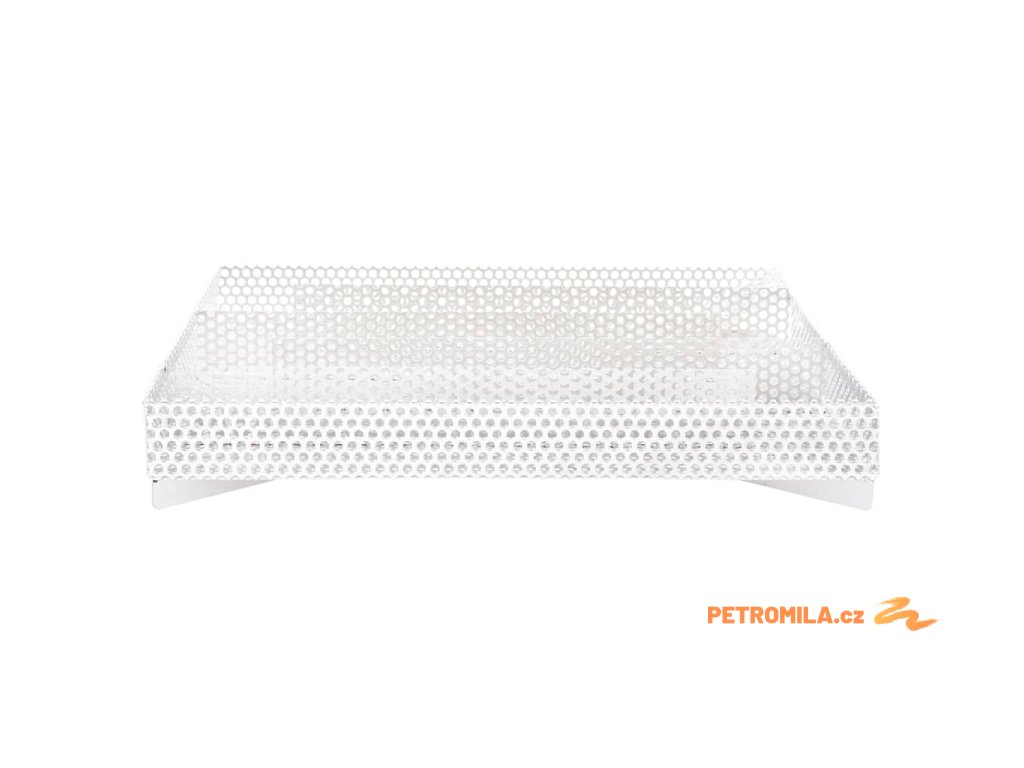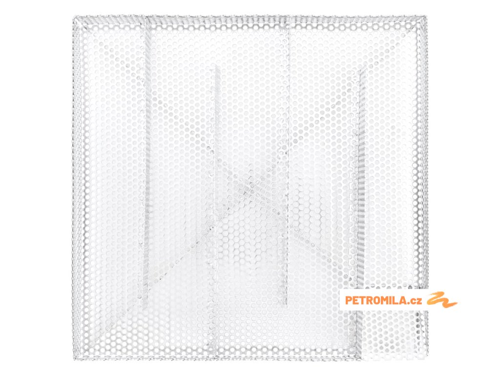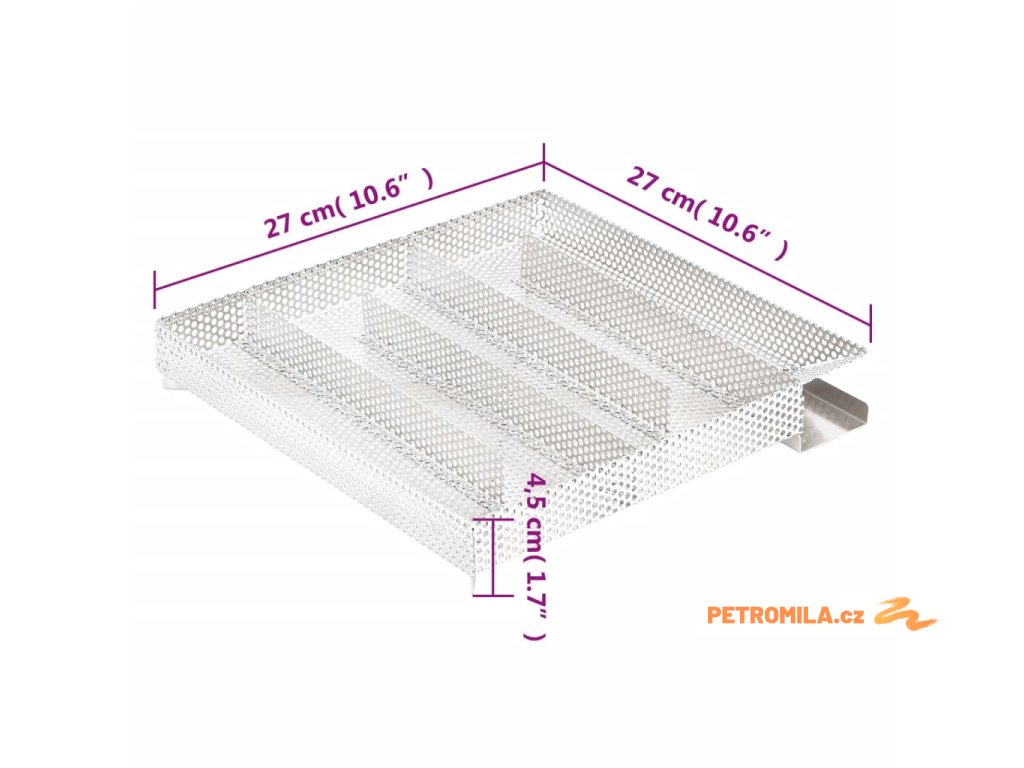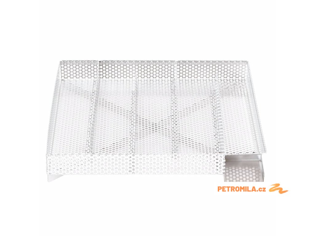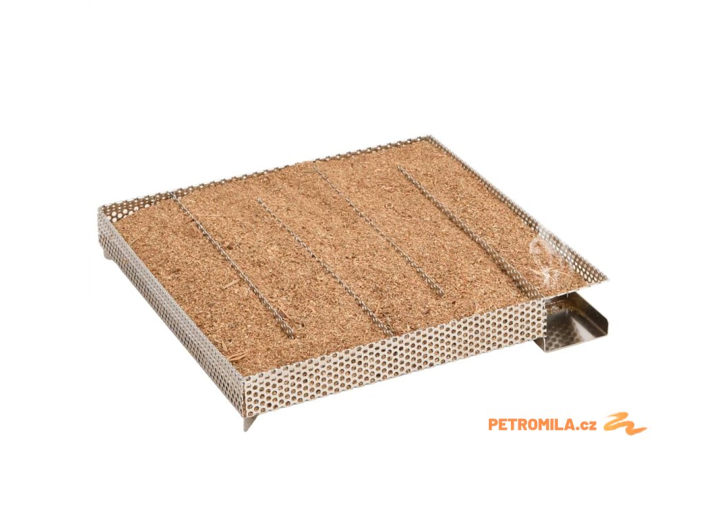 - Pevná mřížková konstrukce: Kompaktní mřížka čtvercového tvaru umožňuje rovnoměrné a pomalé hoření třísek až po dobu 16 hodin. Délka trvání závisí především na druhu dřeva určeného k uzení. Pro dosažení nejlepších výsledků se doporučuje používat štěpky o velikosti zrn 0,5–2,0 mm.