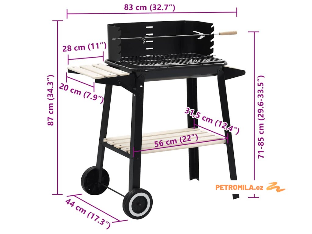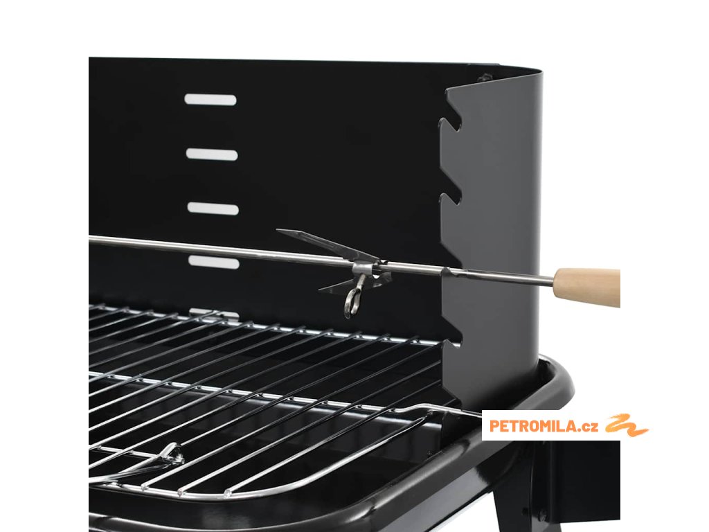 Gril navíc disponuje boční a spodní policí, kam si můžete odkládat své grilovací potřeby tak, abyste je měli neustále po ruce. Grilování vám též usnadní chromovaný grilovací rošt a opékací jehla, takže si ho budete moci vždy užít naplno a bez starostí! Gril je opatřen 2 kolečky, takže ho bez námahy přesunete, kam potřebujete.