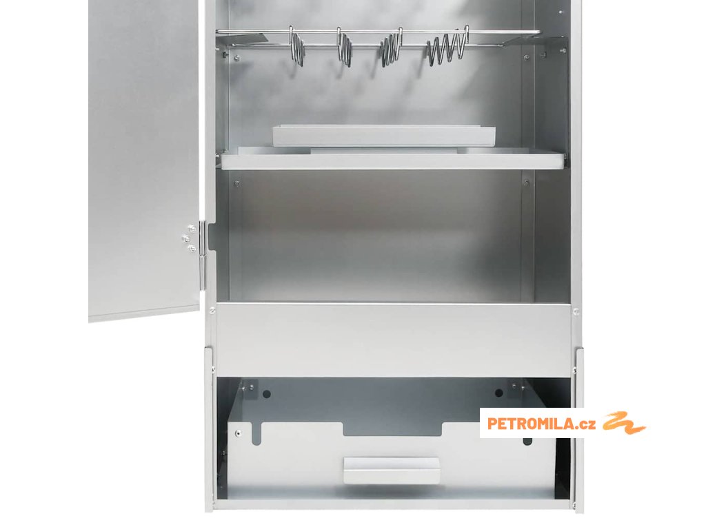 - Dostatek prostoru na uzení: Venkovní udírna poskytuje dostatek prostoru pro uzení masa, ryb, klobás apod. Pomocí přiložených háků ve tvaru písmene S a roštů bude grilování pohodlnější.