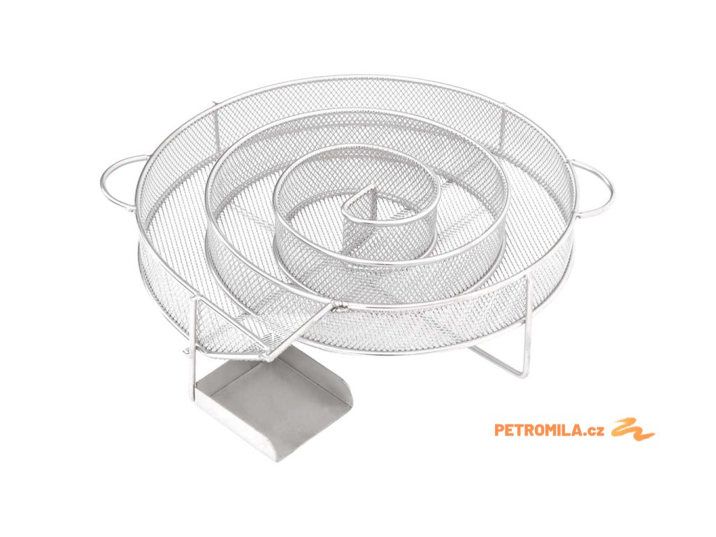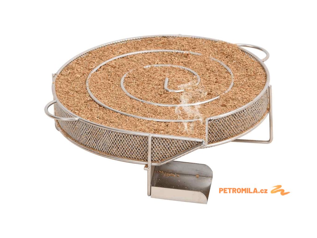 - Generátor studeného kouře: Stačí naplnit pilinami a zapálit čajovou svíčkou, dokud piliny nezačnou měnit barvu. Vyjměte čajovou svíčku a umístěte generátor kouře do chladicí komory. Kompaktní mřížka ve tvaru šneka umožňuje rovnoměrné a pomalé hoření štěpků po dobu až 7 hodin.