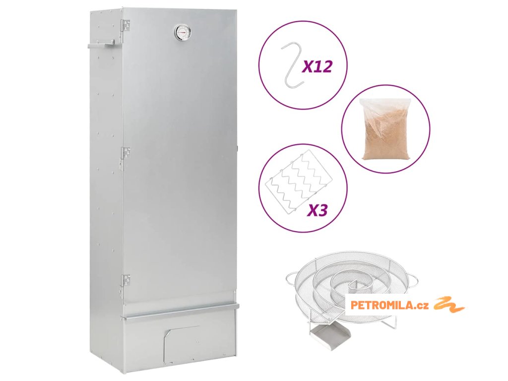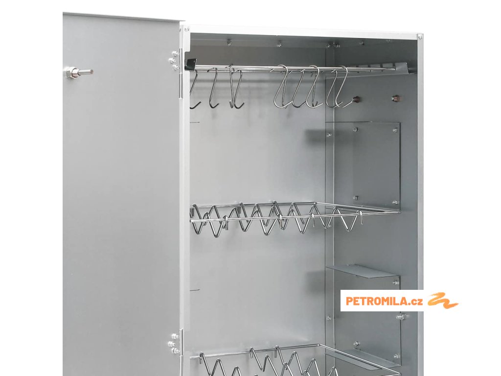 - Dostatek prostoru na uzení: Venkovní udírna poskytuje dostatek prostoru pro uzení masa, ryb, klobás apod. Pomocí přiložených háků ve tvaru písmene S a roštů bude grilování pohodlnější.