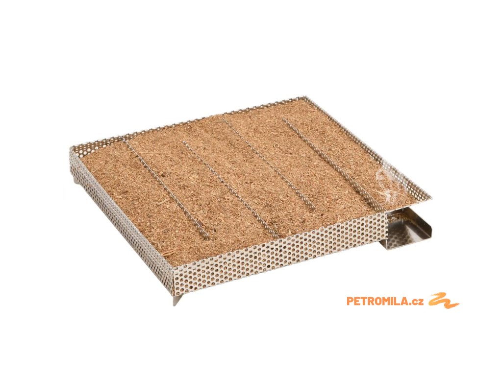 - Snadné použití: Stačí naplnit pilinami a zapálit čajovou svíčkou, dokud piliny nezačnou měnit barvu. Vyjměte čajovou svíčku a vložte generátor do udírny. Kompaktní čtvercová mřížka umožňuje rovnoměrné a pomalé hoření štěpků po dobu až 16 hodin.