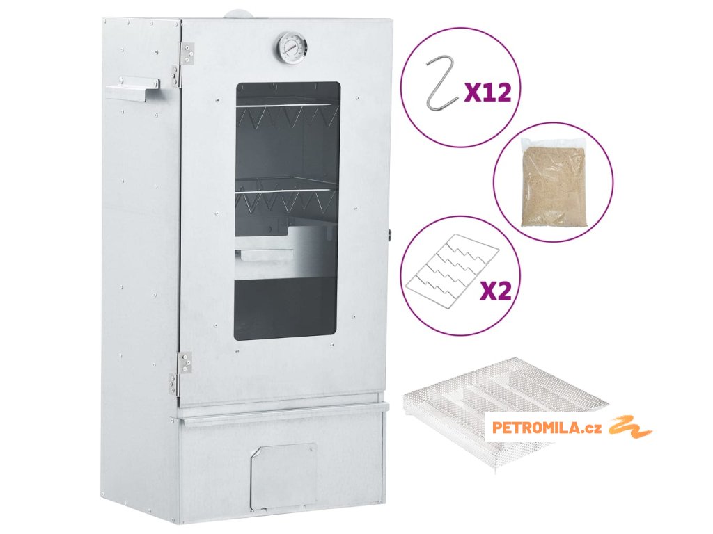 - Dostatek prostoru na uzení: Venkovní udírna poskytuje dostatek prostoru pro uzení masa, ryb, klobás apod. Pomocí přiložených háků ve tvaru písmene S a roštů bude grilování pohodlnější.