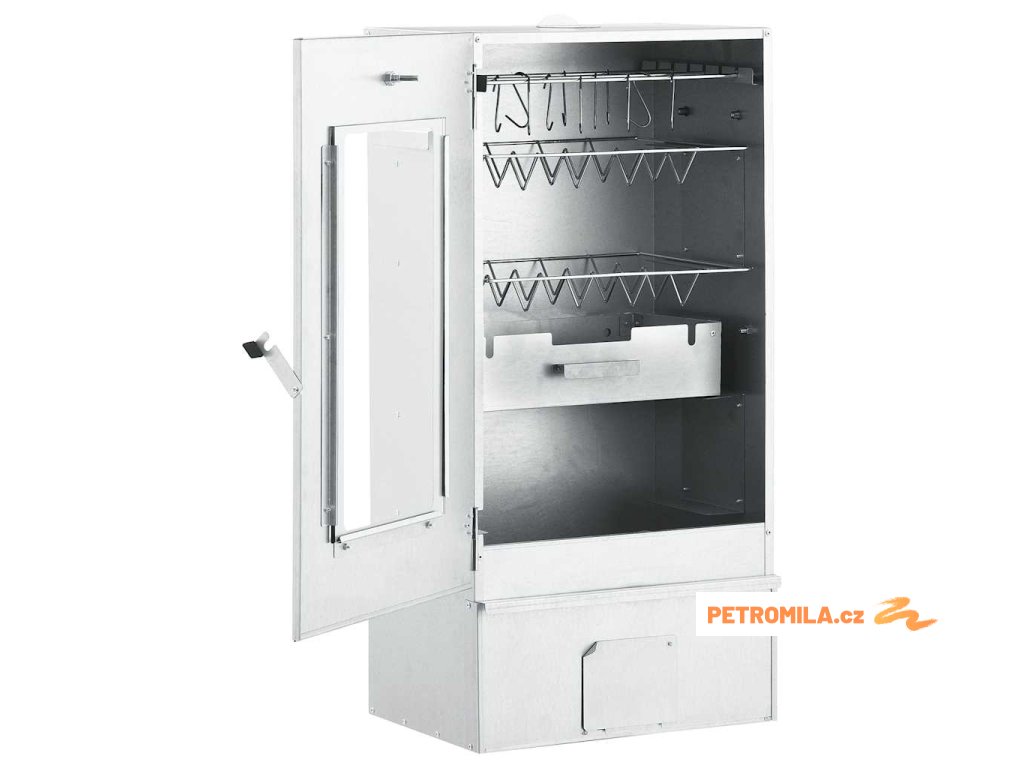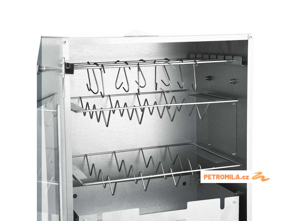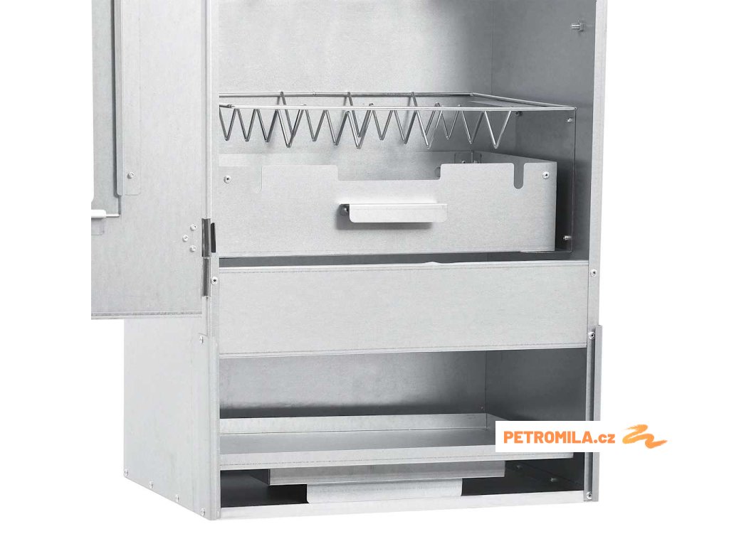 - Dostatek prostoru na uzení: Venkovní udírna poskytuje dostatek prostoru pro uzení masa, ryb, klobás apod. Pomocí přiložených háků ve tvaru písmene S a roštů bude grilování pohodlnější.