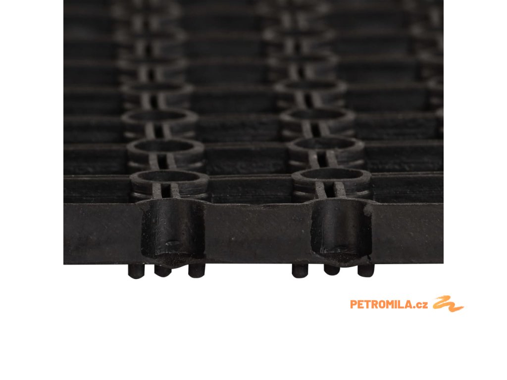 Rohož je možné prostřednictvím konektorů (nejsou součástí balení) snadno spojit s další a vytvářet tak nejrůznější tvary a velikosti. Je vyrobena ze 100% gumy, a výborně tudíž odolává povětrnostním vlivům, je protiskluzová a navíc se snadno čistí.