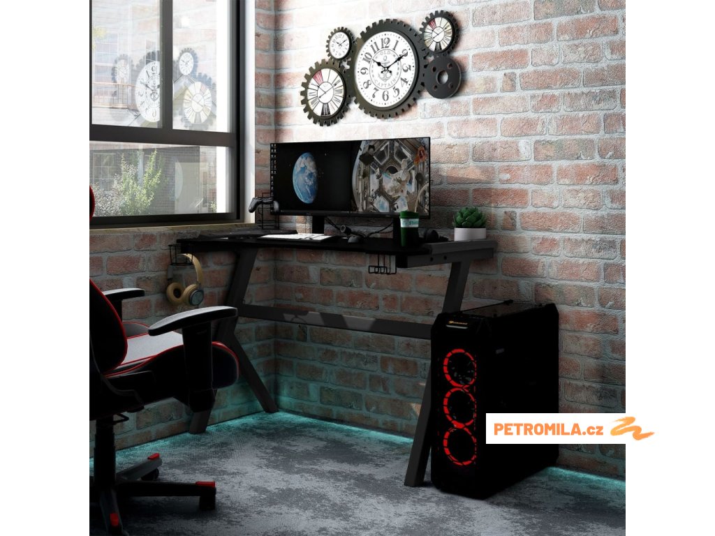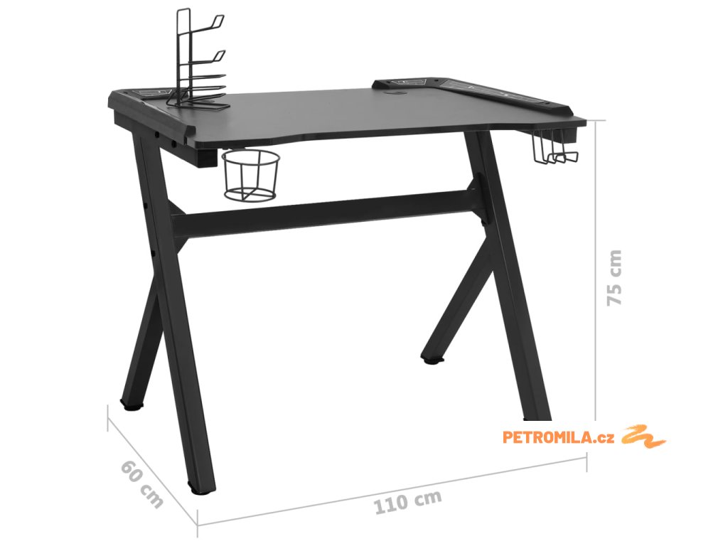 Herní stůl s LED a nohami ve tvaru Y černý 110 x 60 x 75 cm