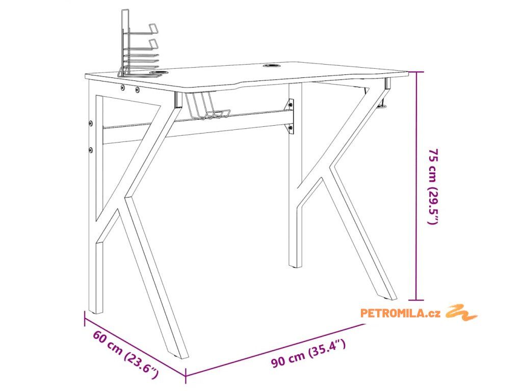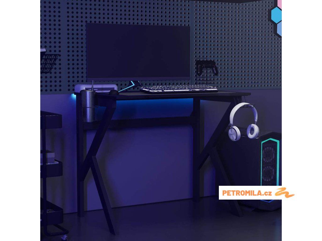 Herní stůl s nohami ve tvaru K černý 90 x 60 x 75 cm