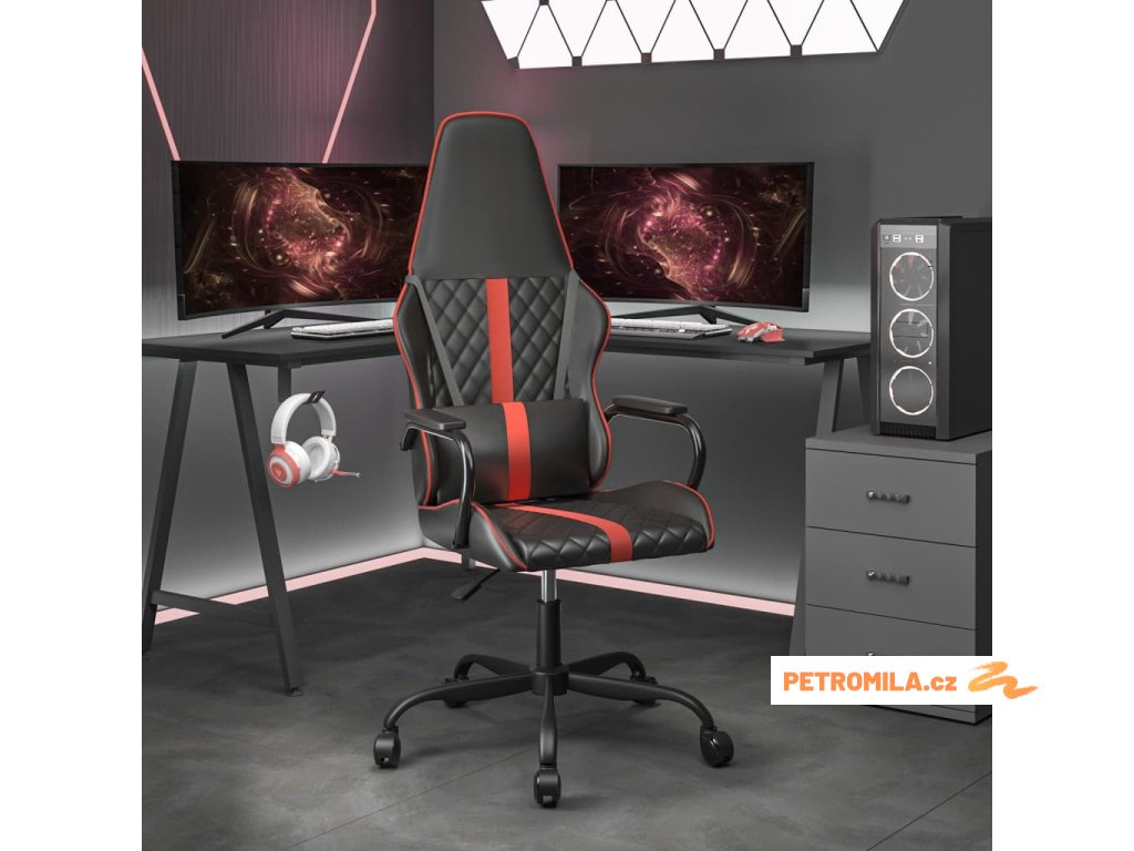 Herní židle černá a červená umělá kůže