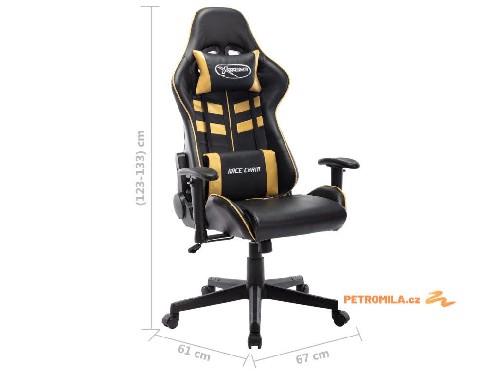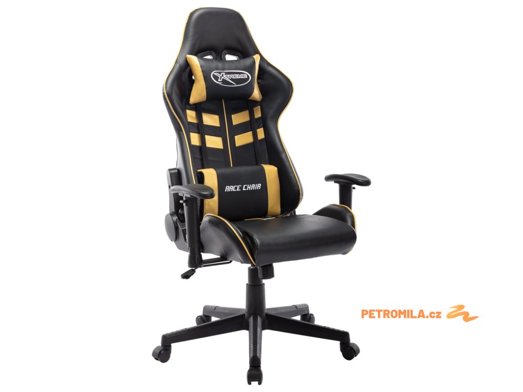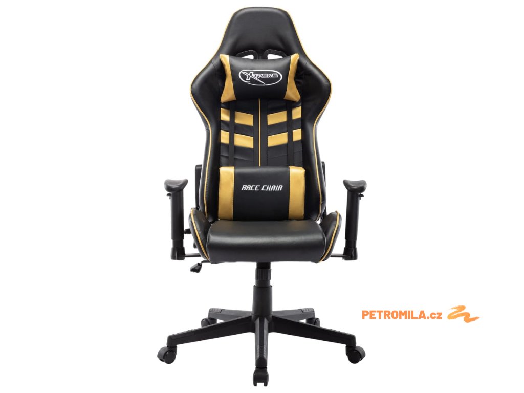 Herní židle černá a zlatá umělá kůže