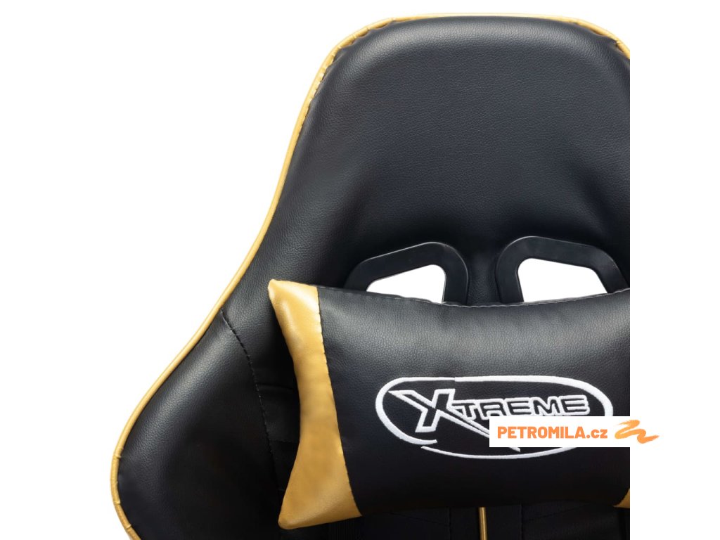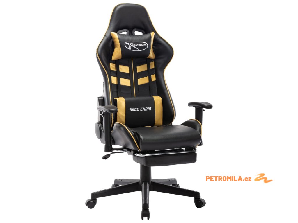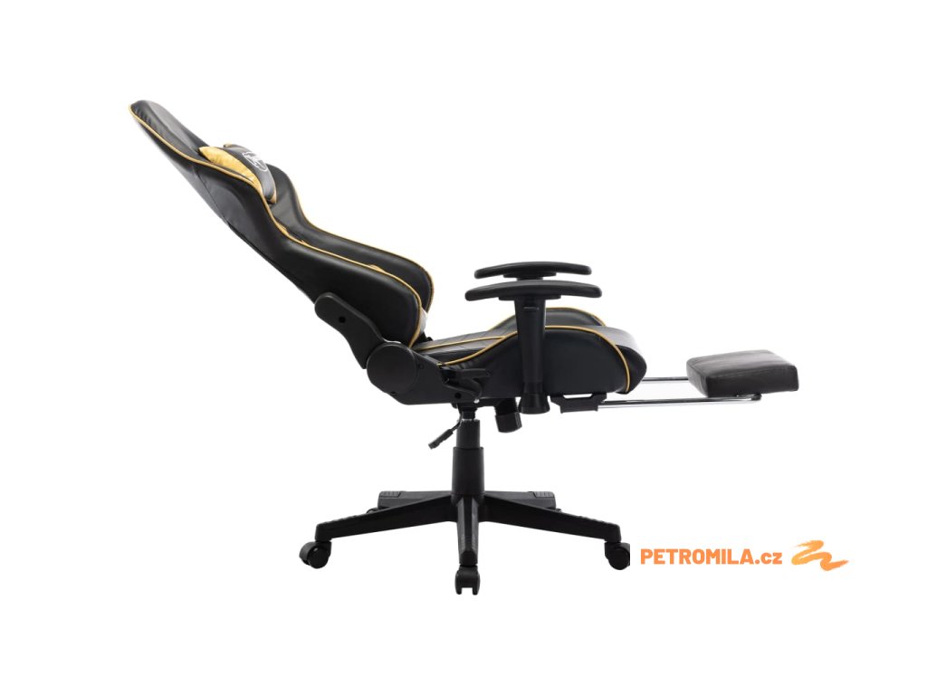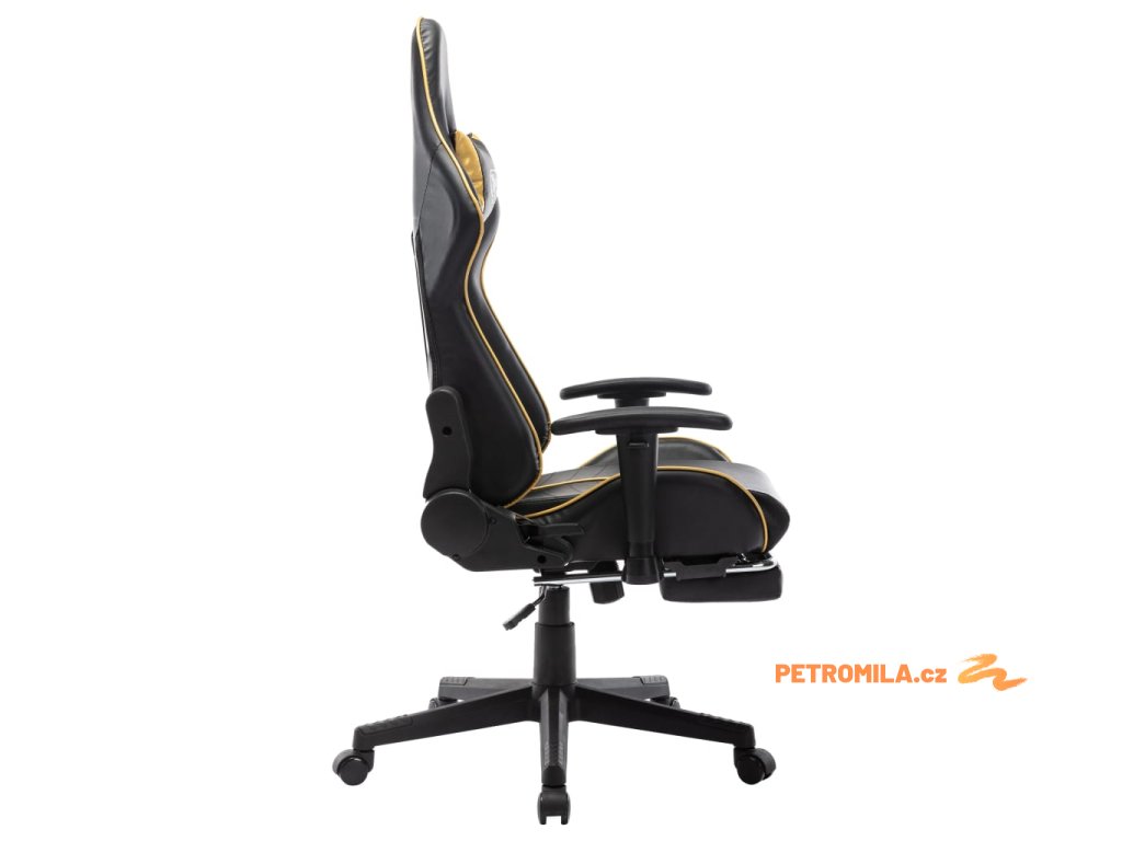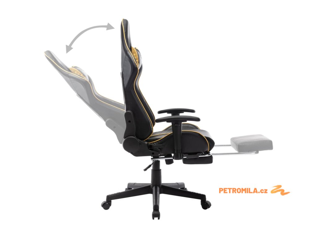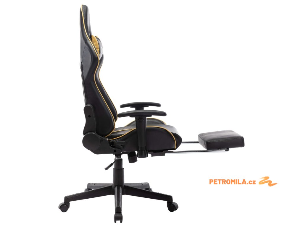 Herní židle s podnožkou černá a zlatá umělá kůže