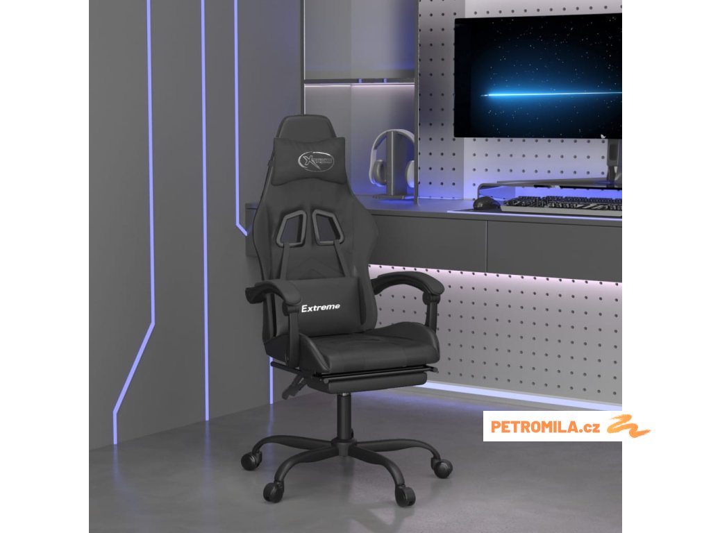 Herní židle s podnožkou černá umělá kůže