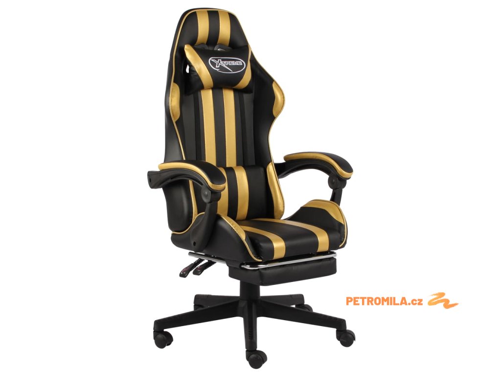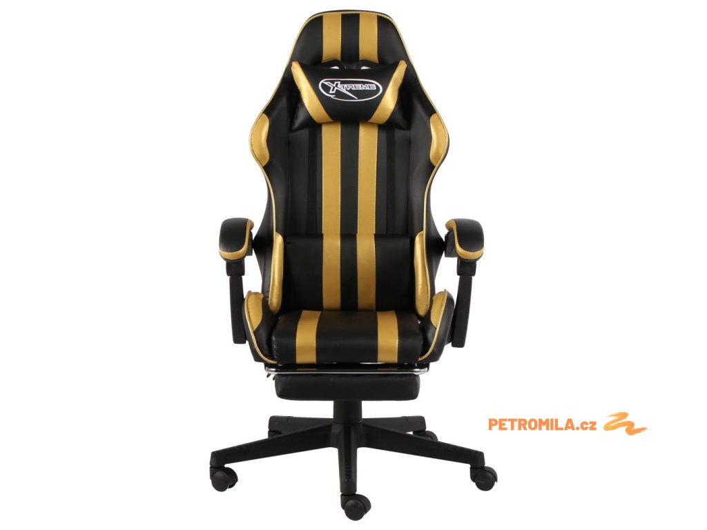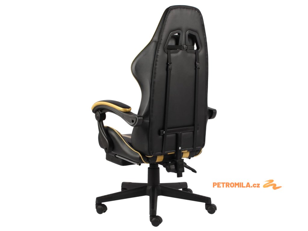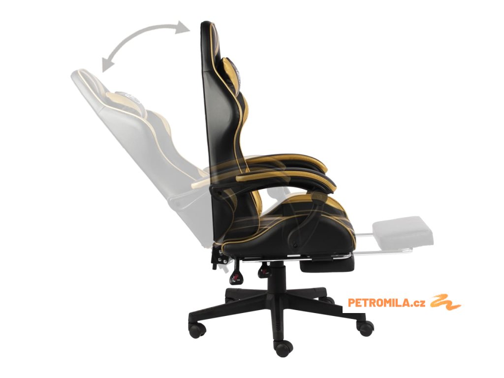 Herní židle s podnožkou černo-zlatá umělá kůže