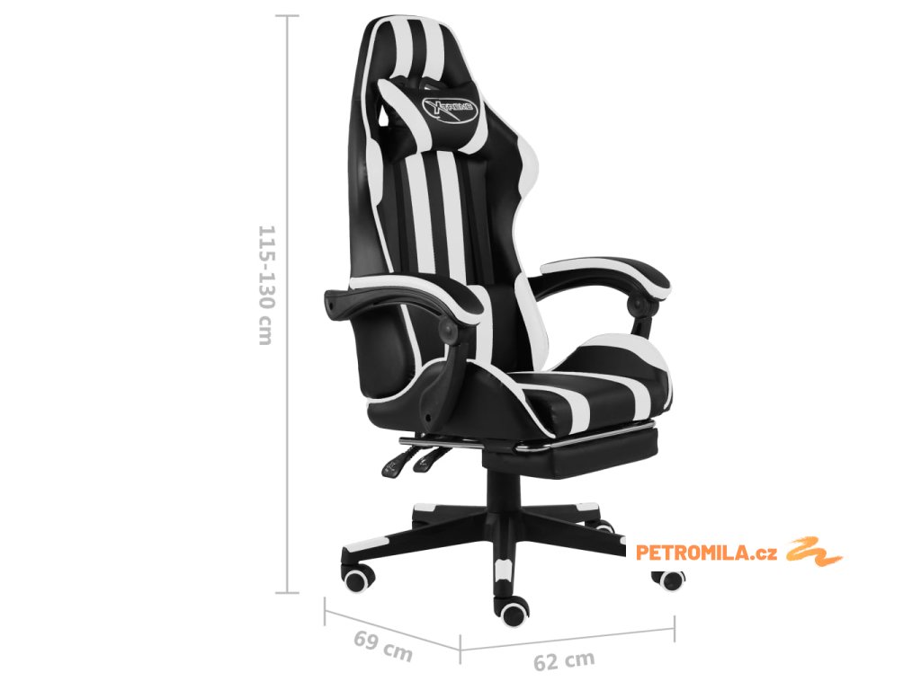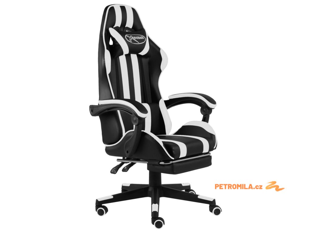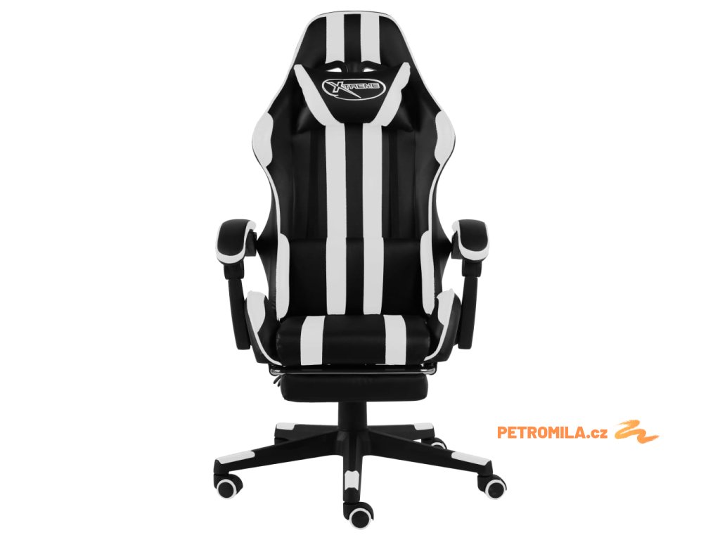 Herní židle s podnožkou černobílá umělá kůže