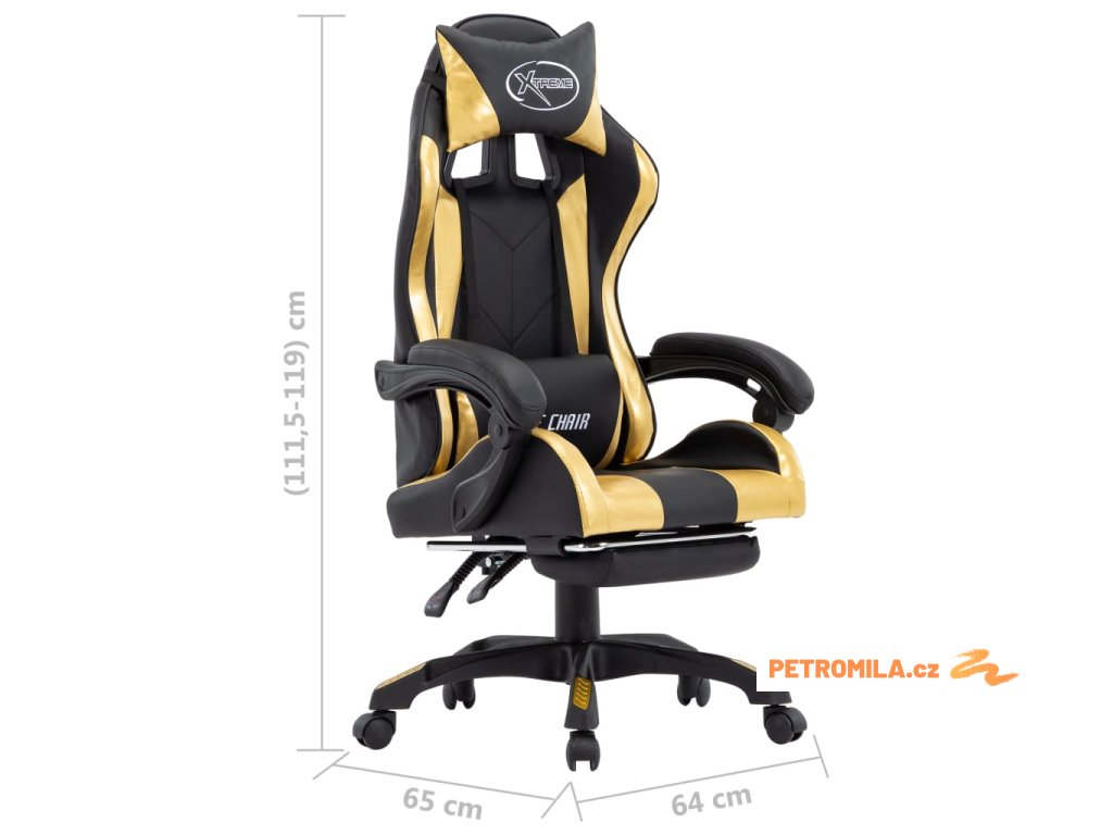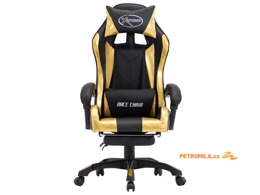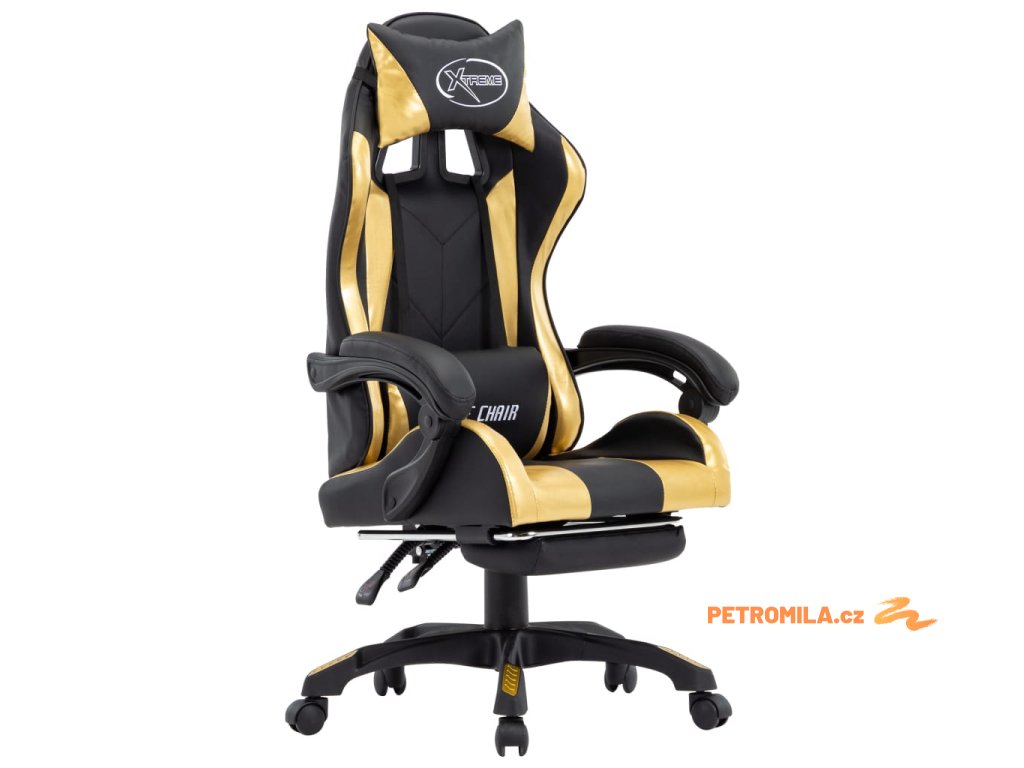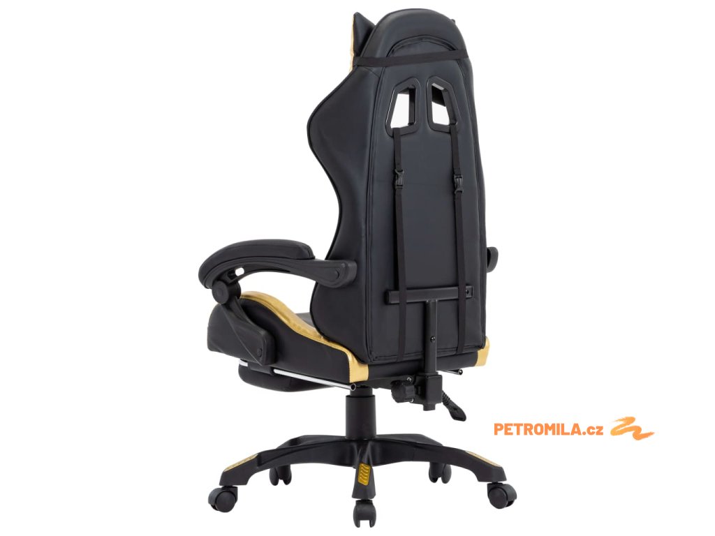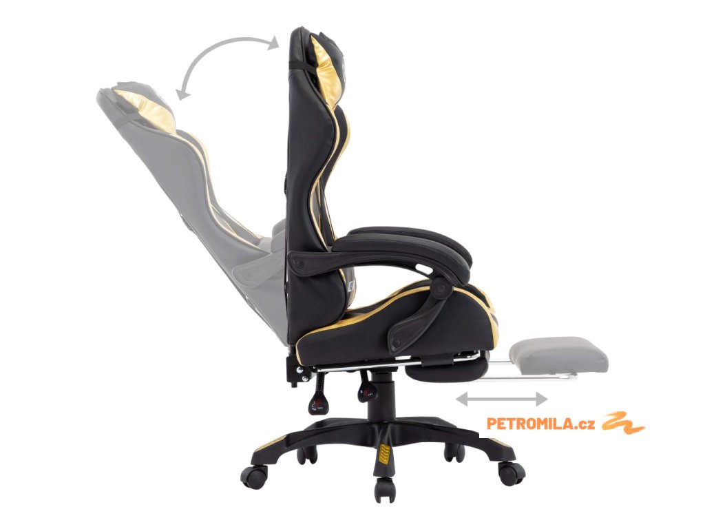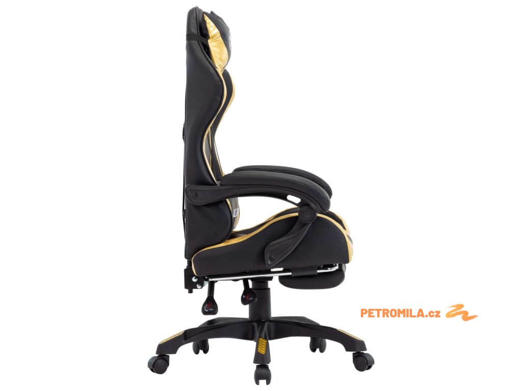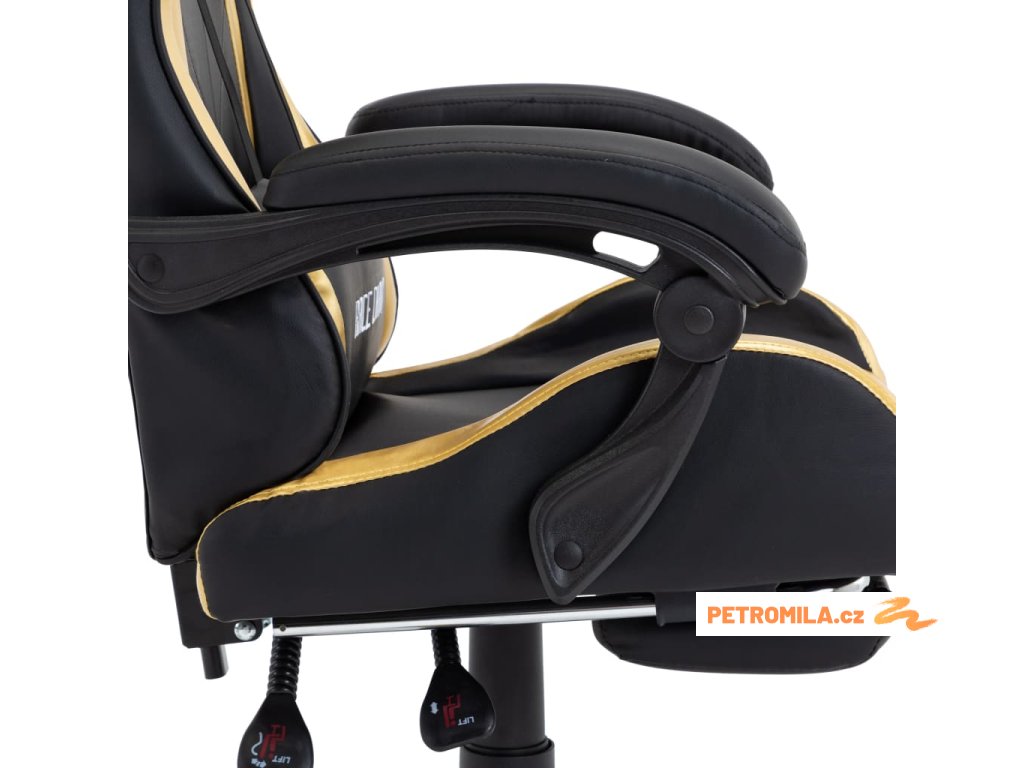 Herní židle s podnožkou zlatá a černá umělá kůže