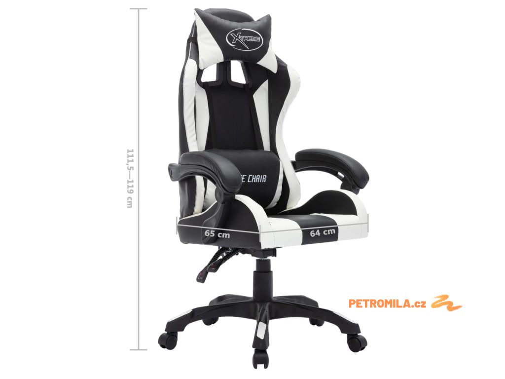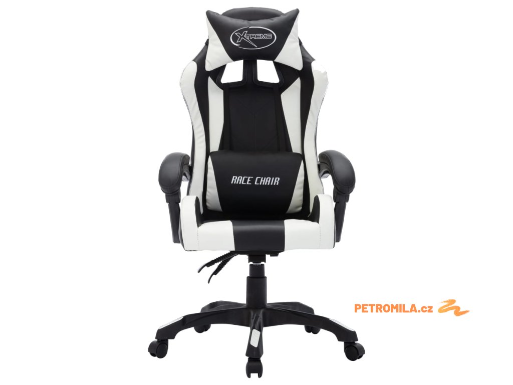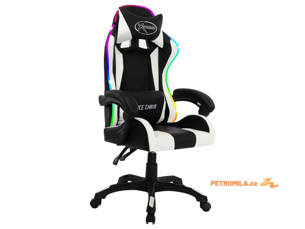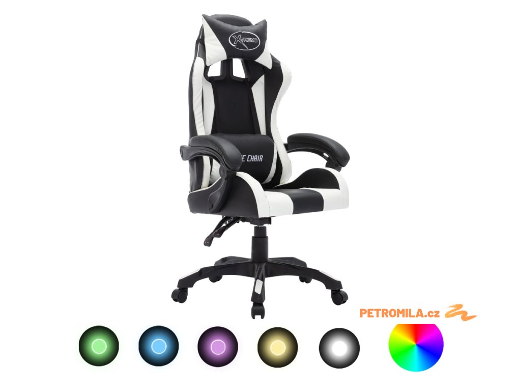 Herní židle s RGB LED podsvícením bíločerná umělá kůže