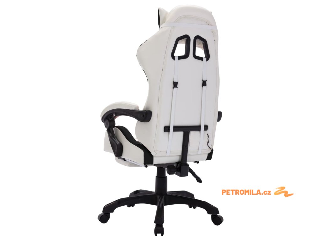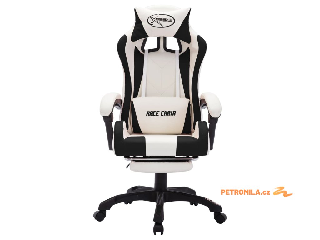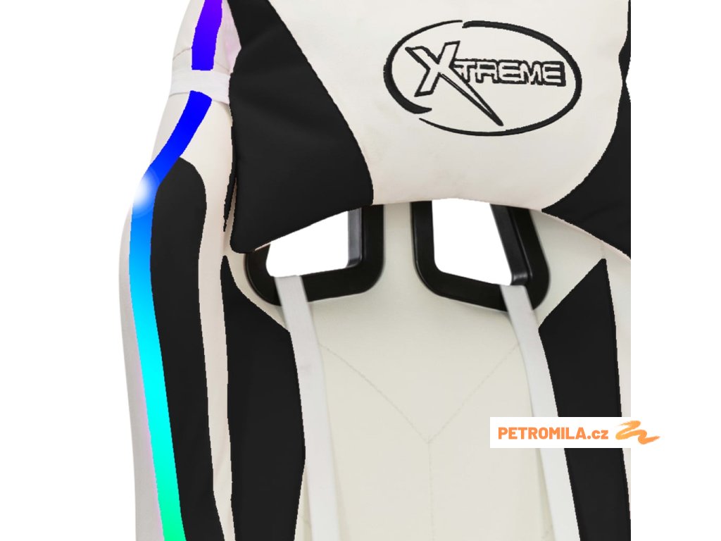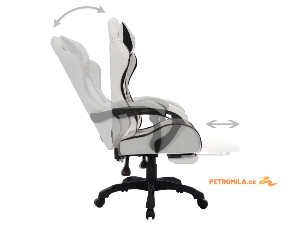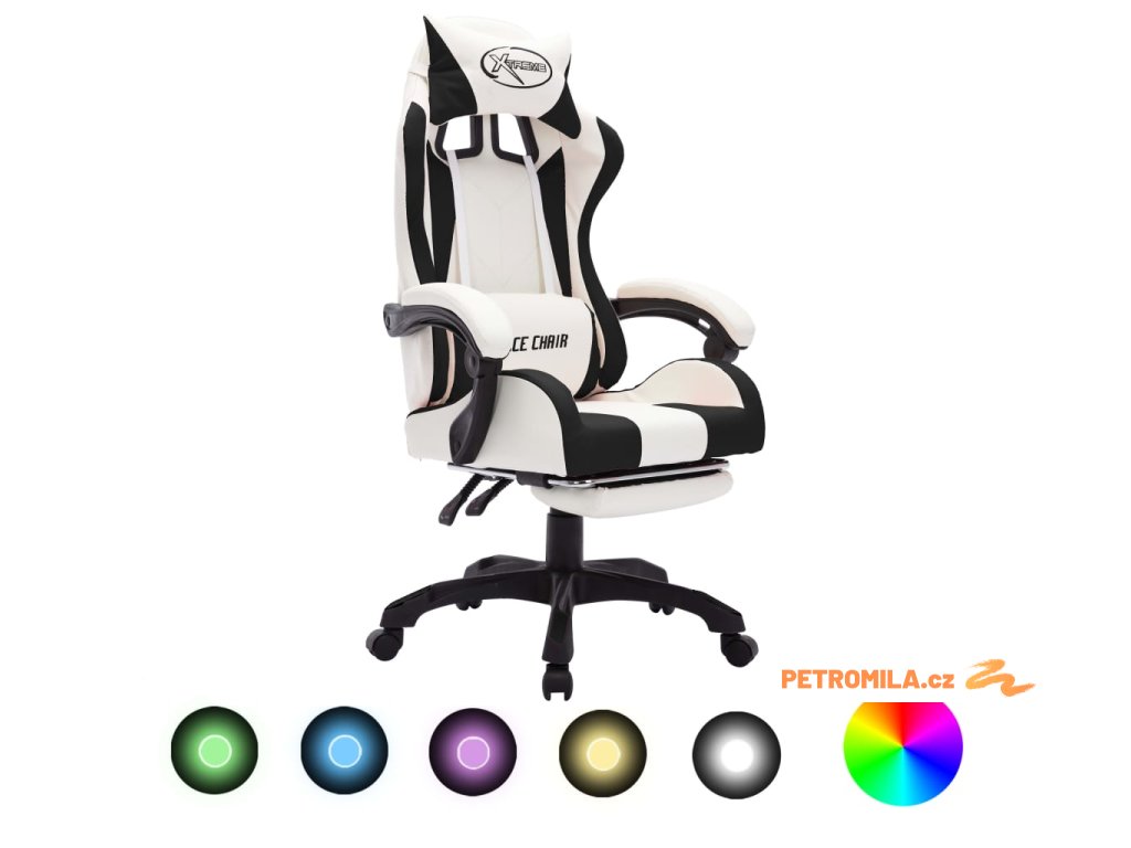 Herní židle s RGB LED podsvícením černo-bílá umělá kůže