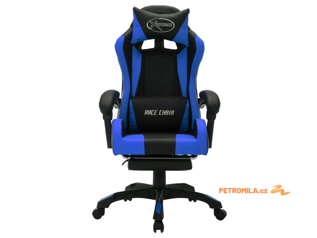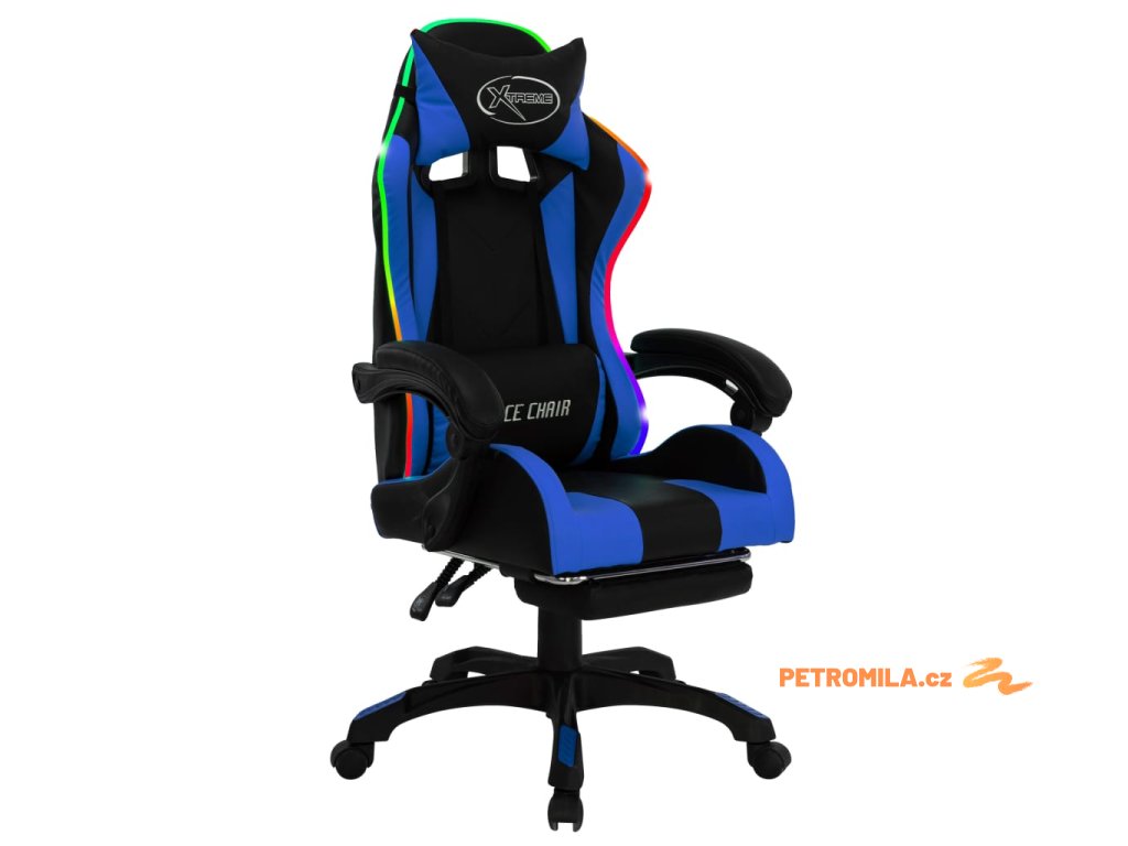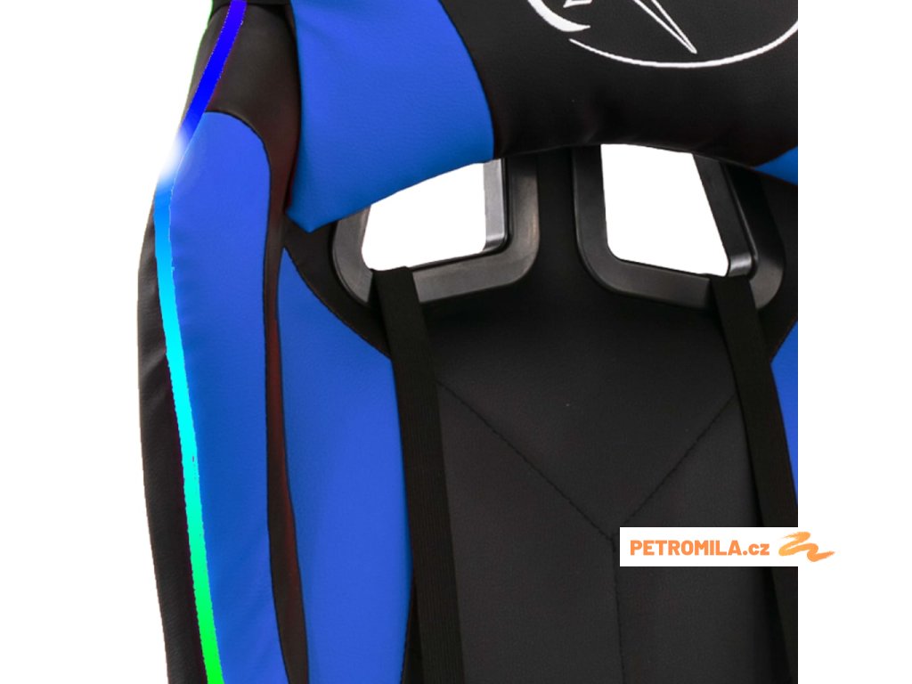 Herní židle s RGB LED podsvícením modro-černá faux kůže