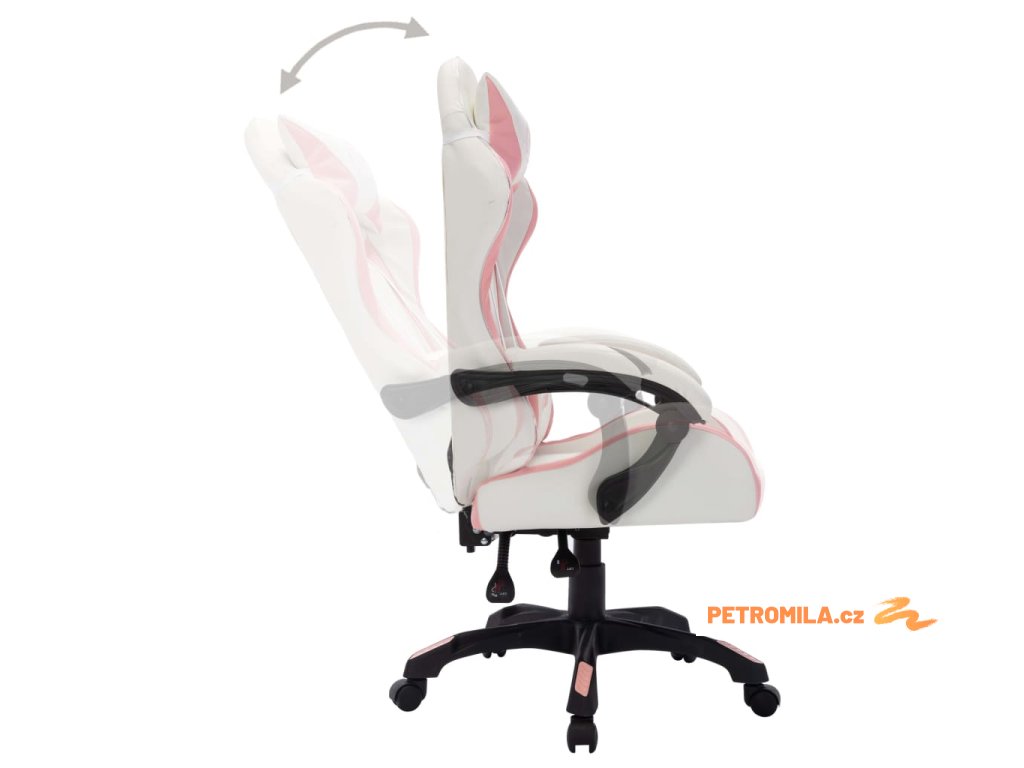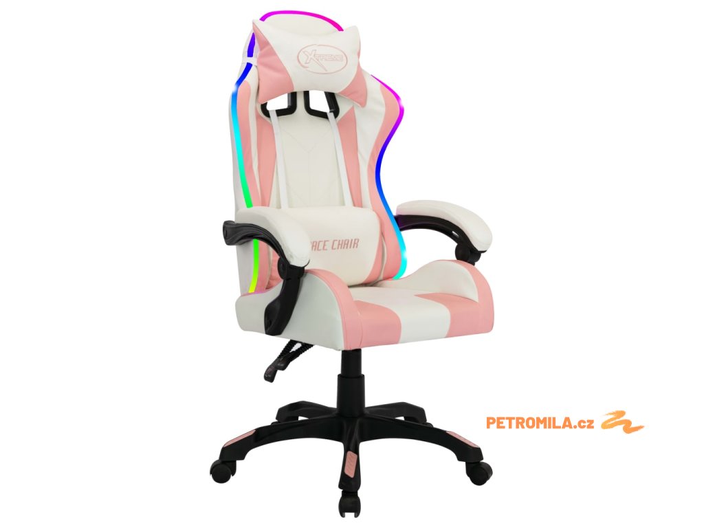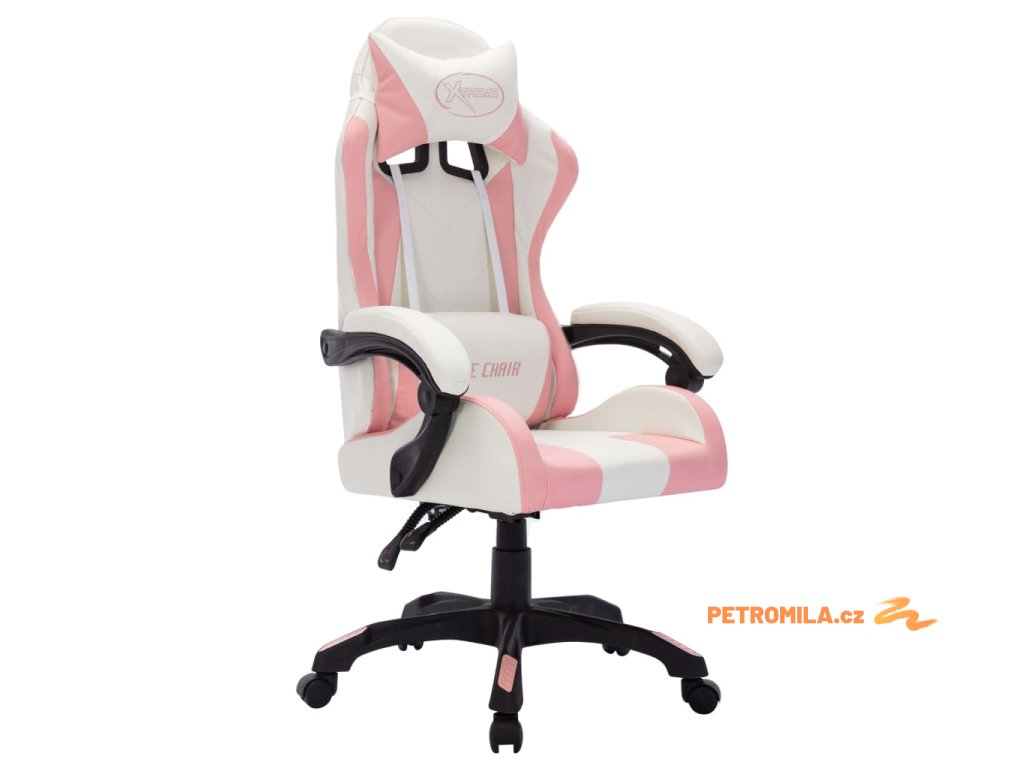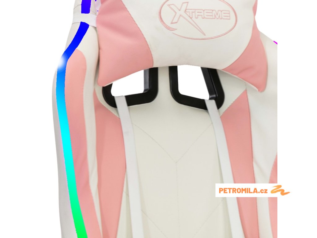 Herní židle s RGB LED podsvícením růžovo-černá umělá kůže