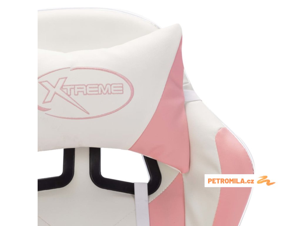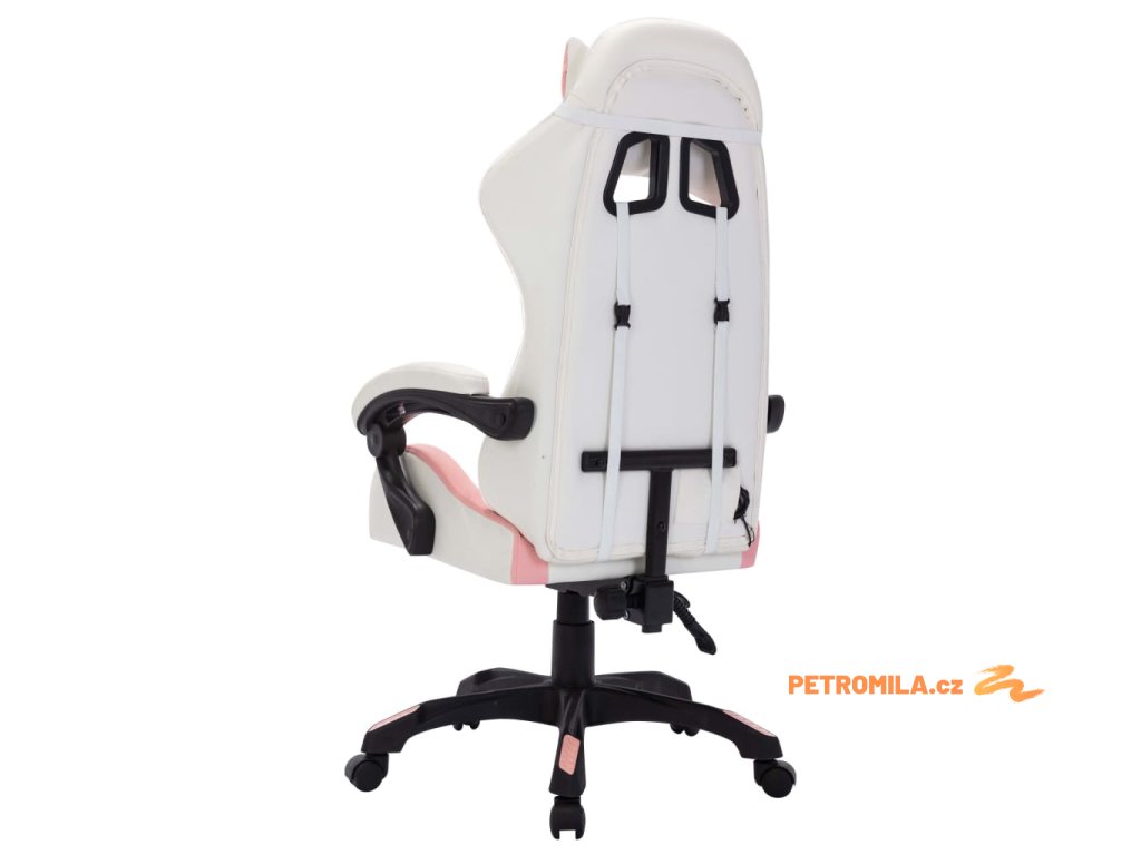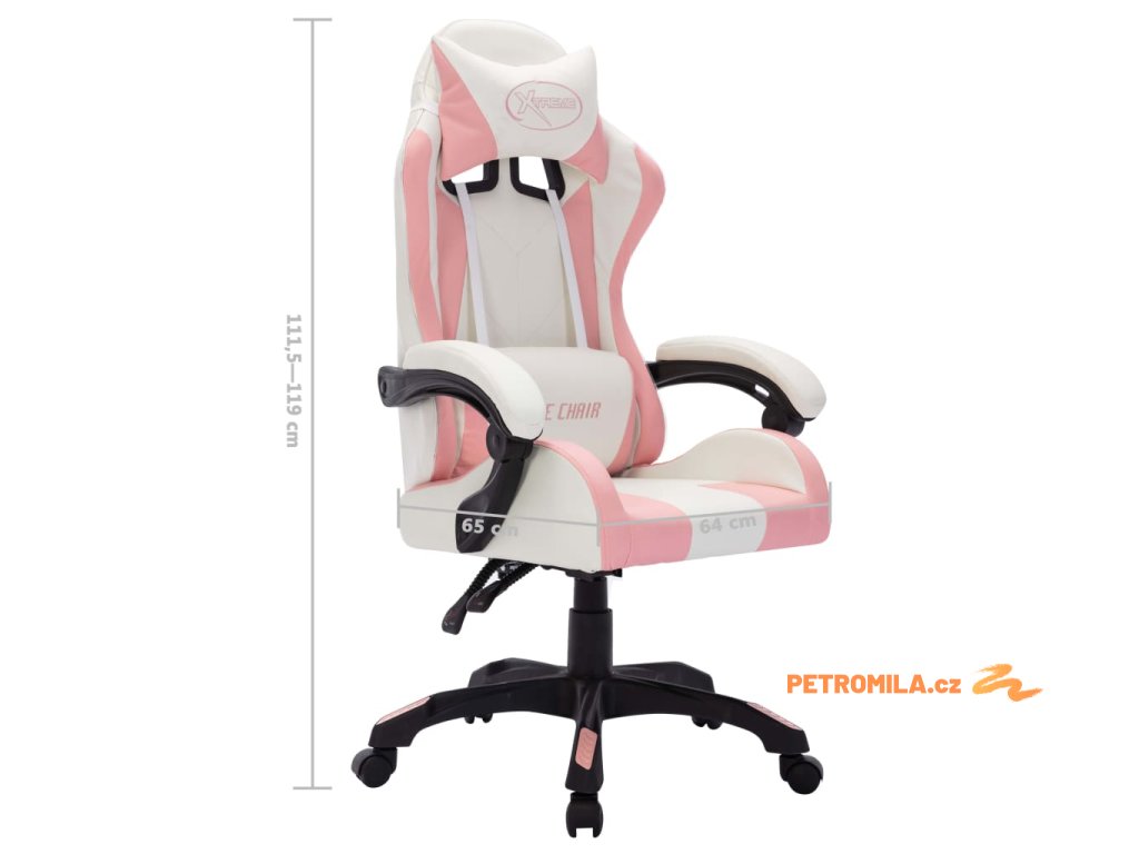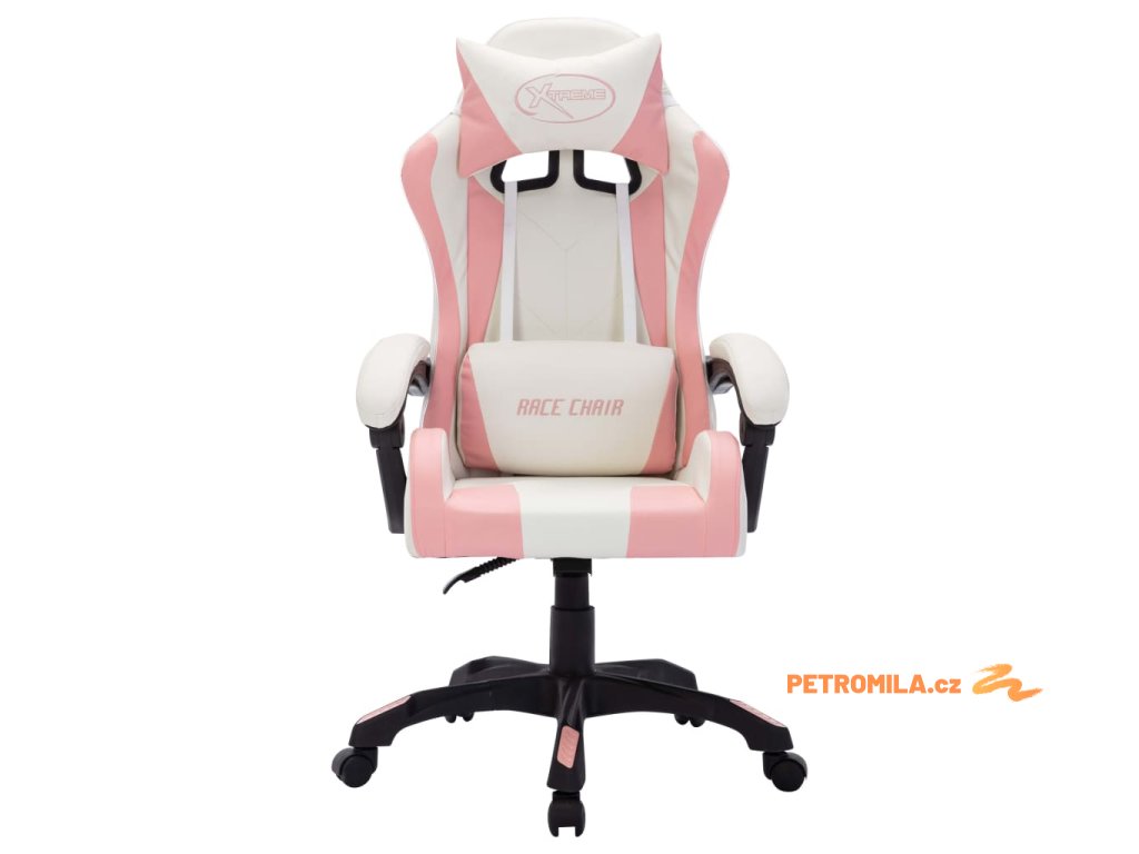 Herní židle s RGB LED podsvícením růžovo-černá umělá kůže