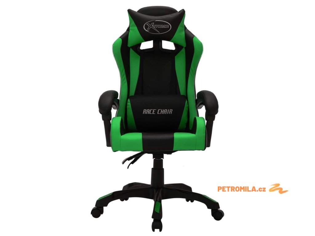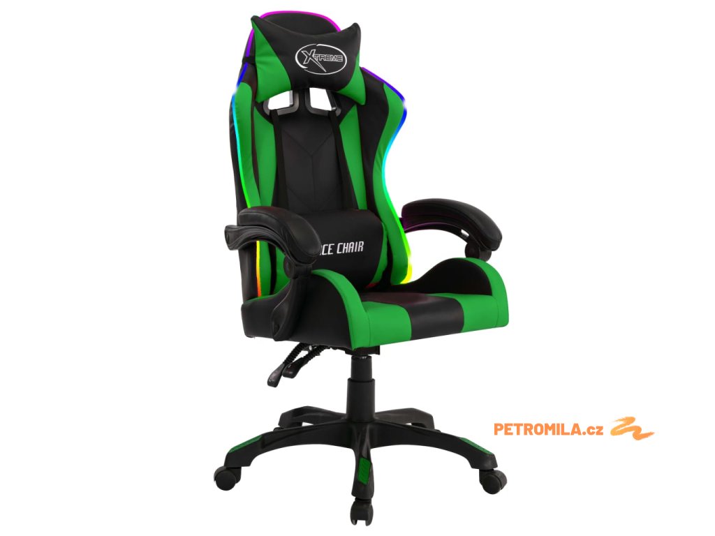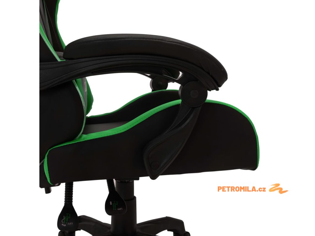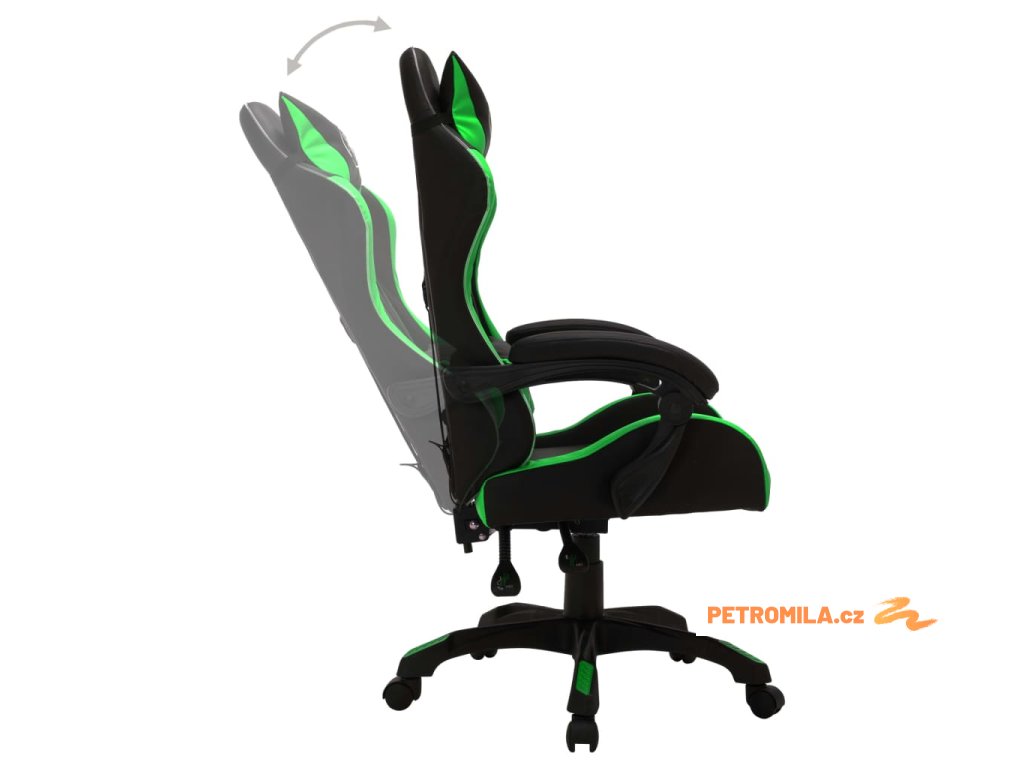 Herní židle s RGB LED podsvícením zeleno-černá umělá kůže