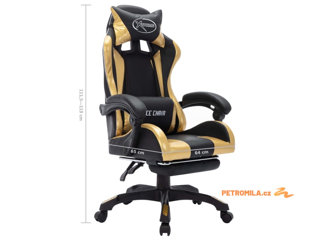 Tato herní židle je čalouněná umělou kůží, která se snadno čistí. Má sklopnou opěrku nohou, kterou lze sklopit pod sedák, kdykoli ji nepoužíváte. Součástí židle je také hustě polstrovaná opěrka hlavy a polštářek pod bedra, která vám nabídnou extra pohodlí pro každý náročný pracovní den. Kancelářská židle je vybavená plynovým zvedacím mechanismem, takže je výškově nastavitelná. Úhel sklopení je také nastavitelný, takže pokud máte pocit, že byste si chtěli zdřímnout, umístěte opěradlo do zcela sklopené polohy. Podvozek s pojezdovými kolečky s 360° otáčením usnadňuje pohyb po okolí. Okraj opěradel je vybaven LED světly poskytující lepší herní atmosféru. Pomocí dálkového ovladače můžete snadno měnit barvu a způsob blikání světel.