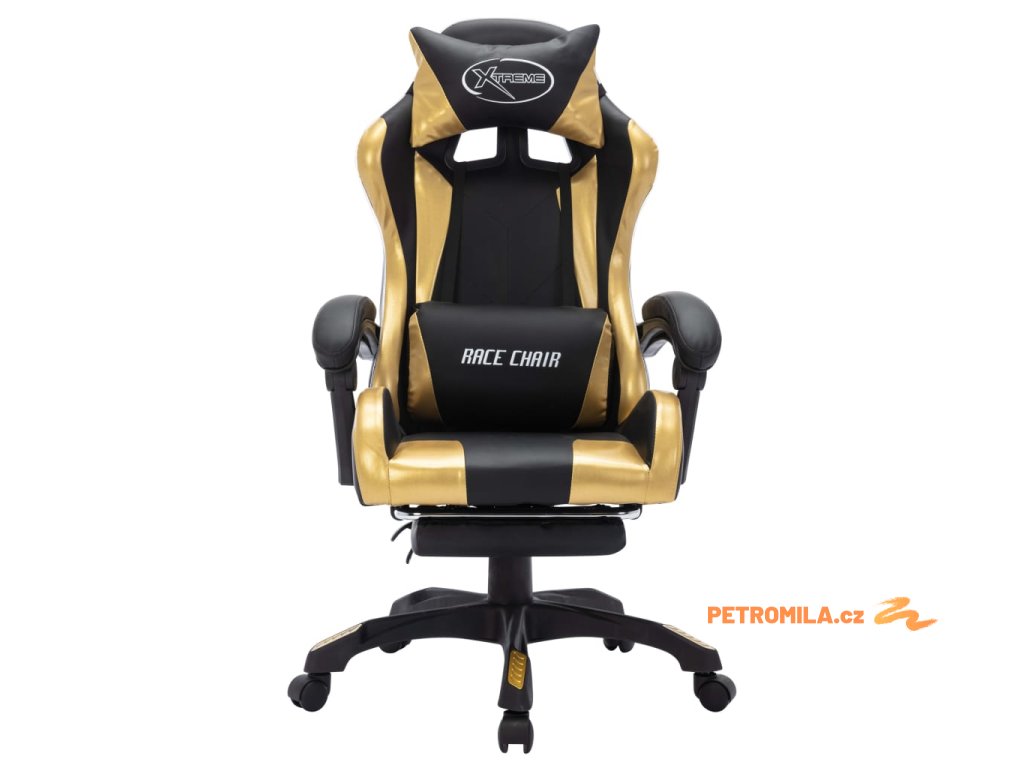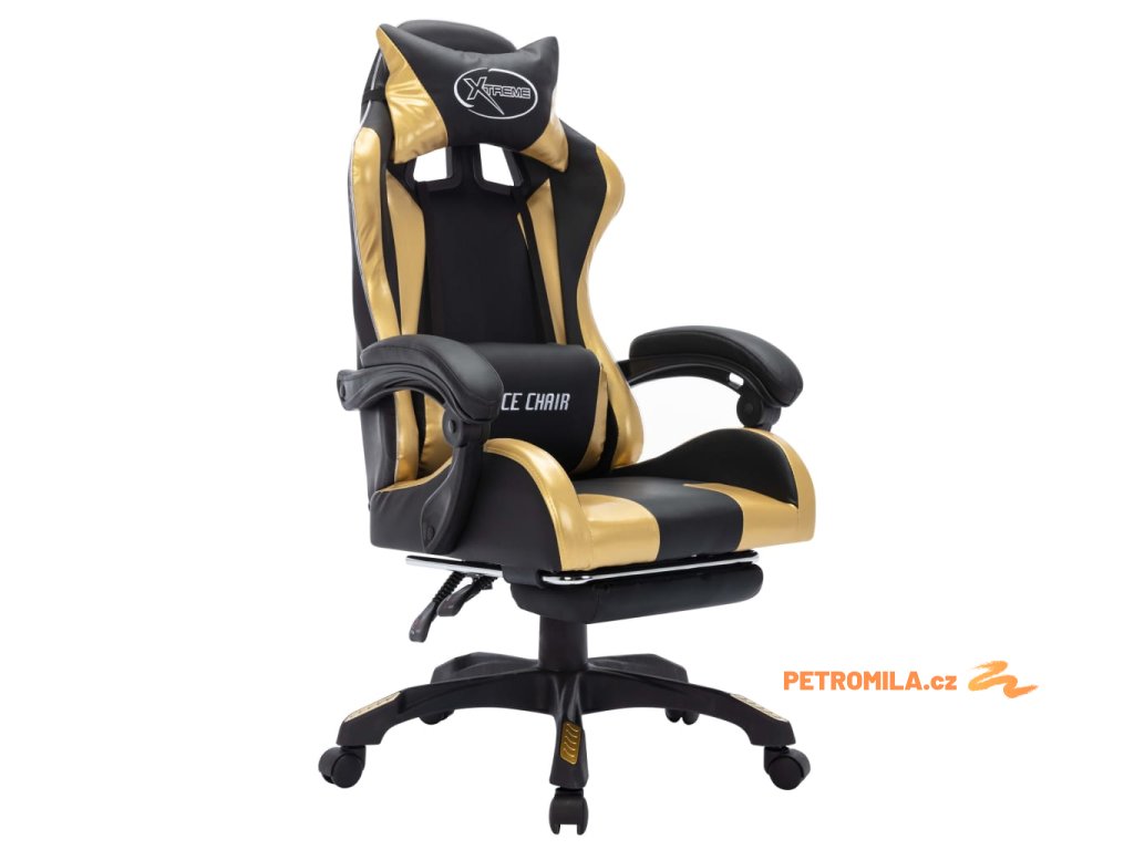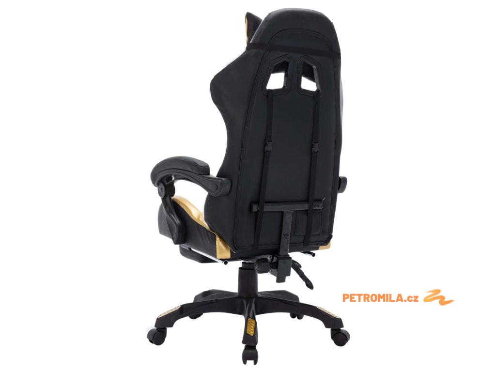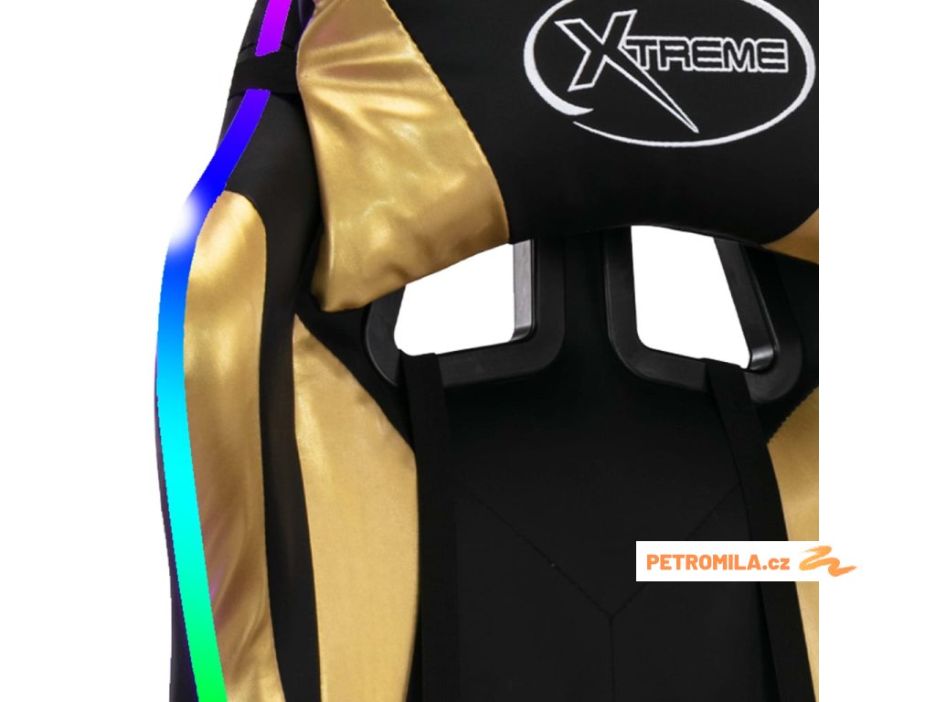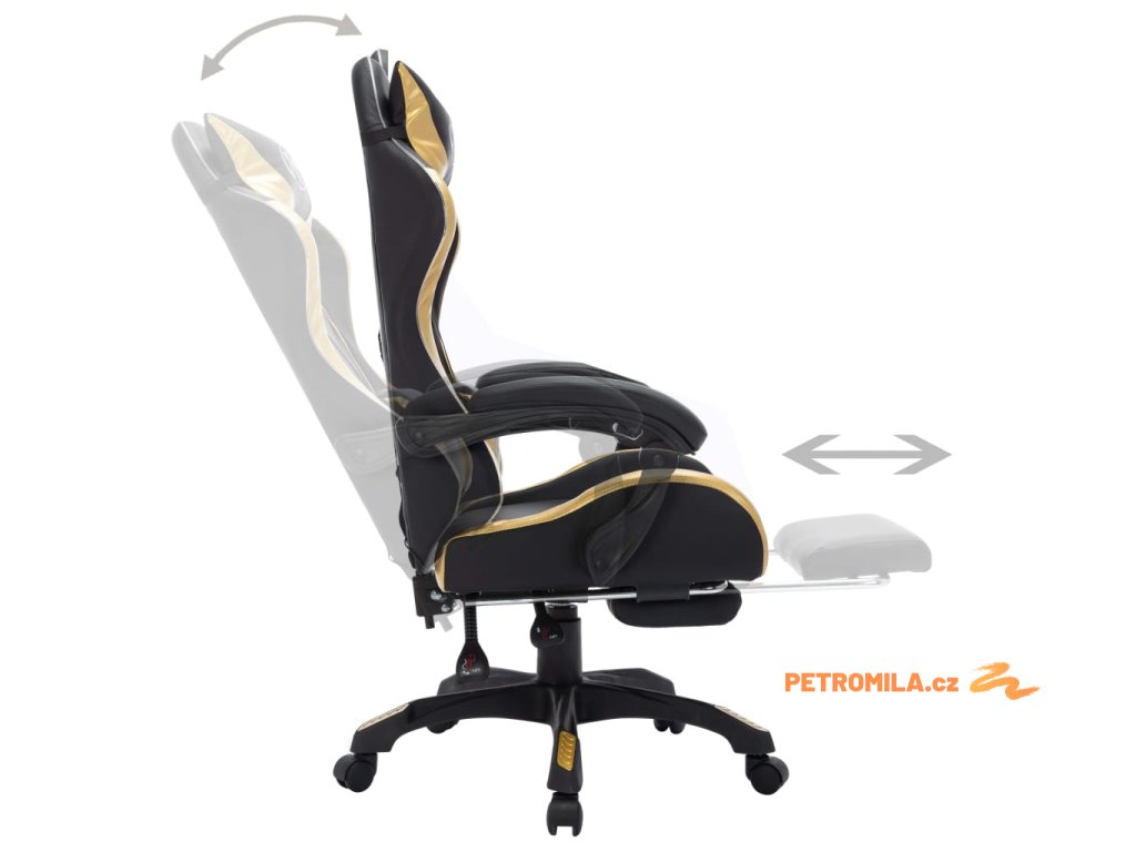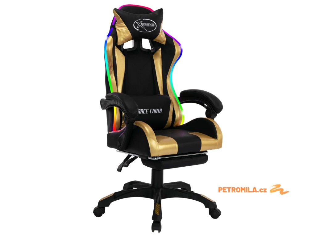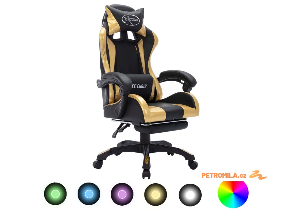 Herní židle s RGB LED podsvícením zlato-černá umělá kůže
