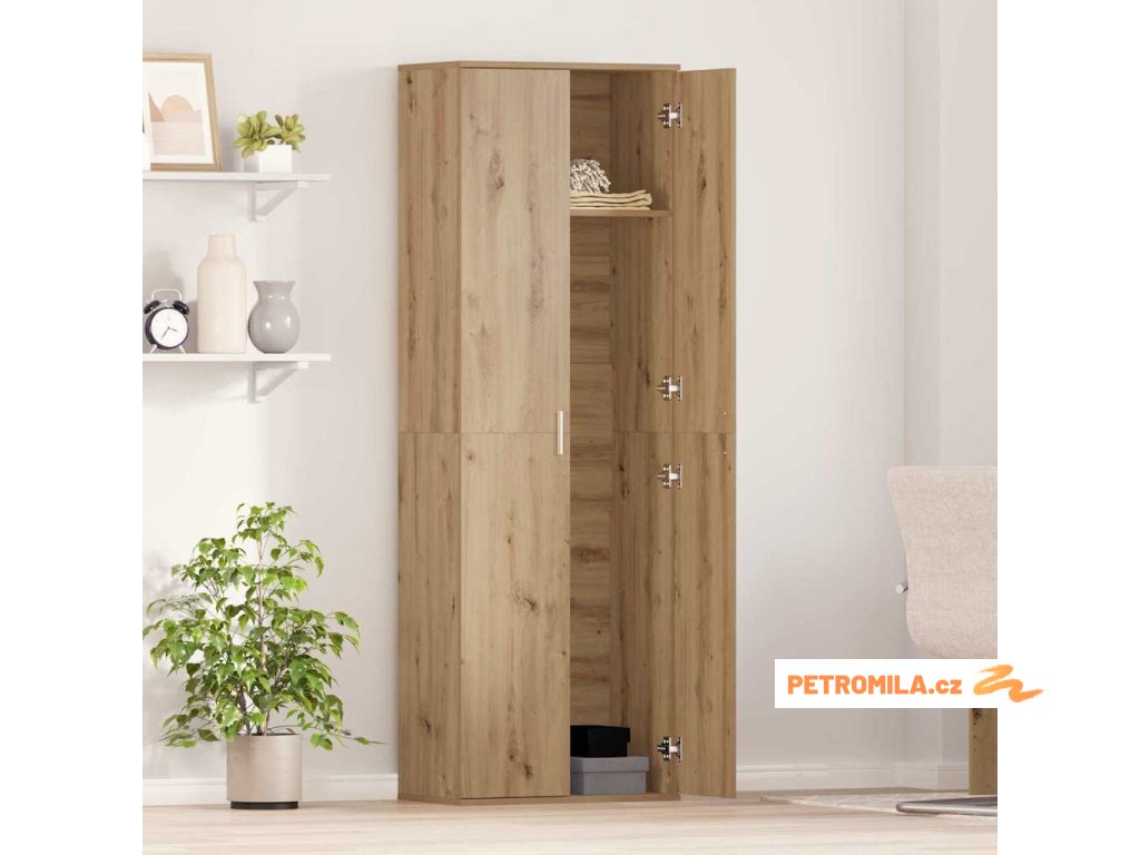 - Dostatek úložného prostoru: Vysoká skříň má chytré poličky, které pojmou vše od nádobí po knihy. Nabízí skvělé řešení úložného prostoru, aniž by zabírala moc místa, a pomáhá udržet věci v pořádku.