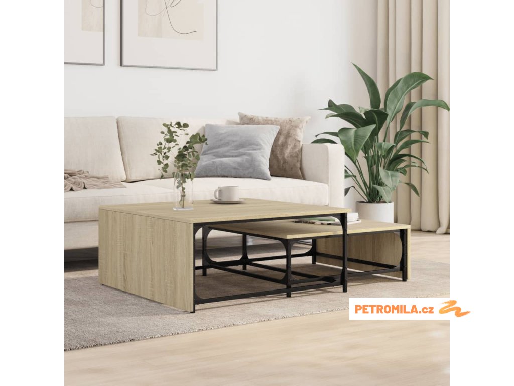 Hnízdové konferenční stolky 2 ks dub sonoma kompozit a kov