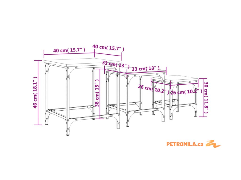 Hnízdové konferenční stolky 3 ks kouřový dub kompozitní dřevo