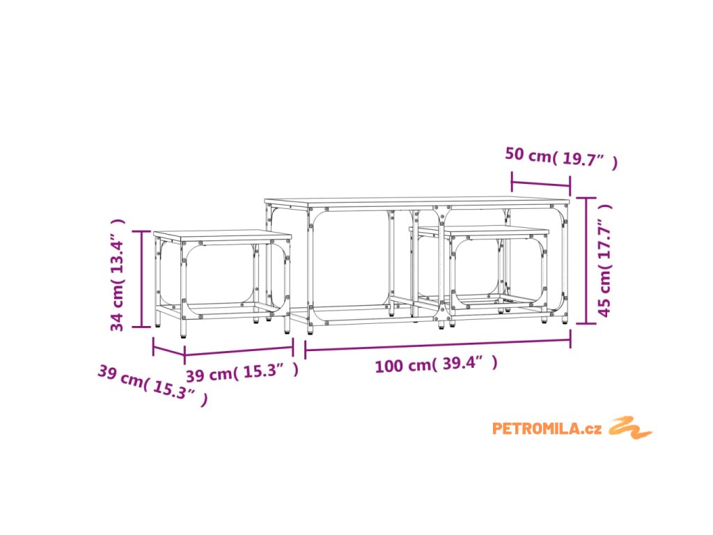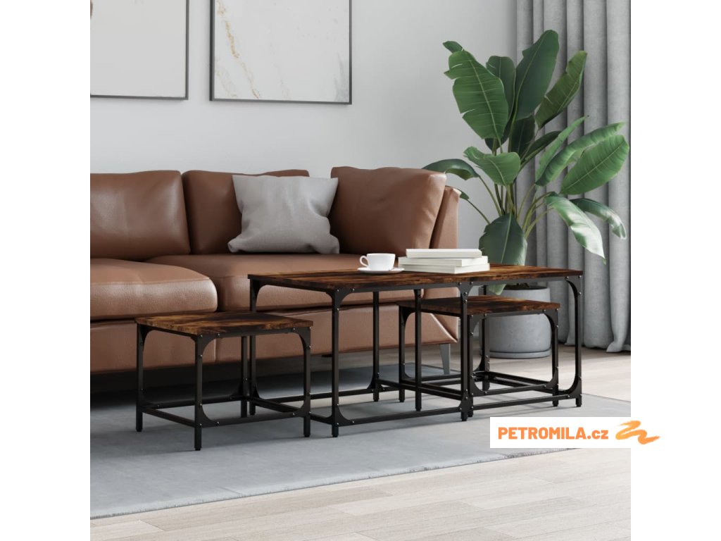 Hnízdové konferenční stolky 3 ks kouřový dub kompozitní dřevo