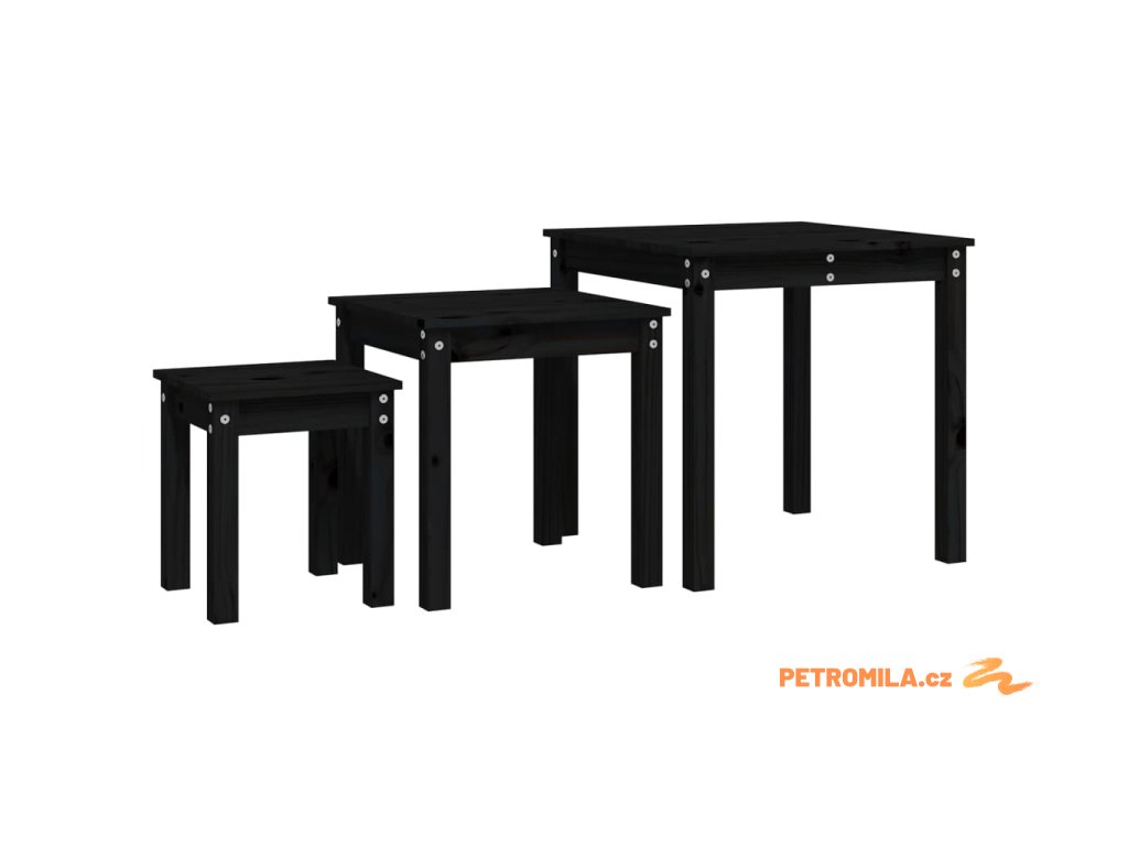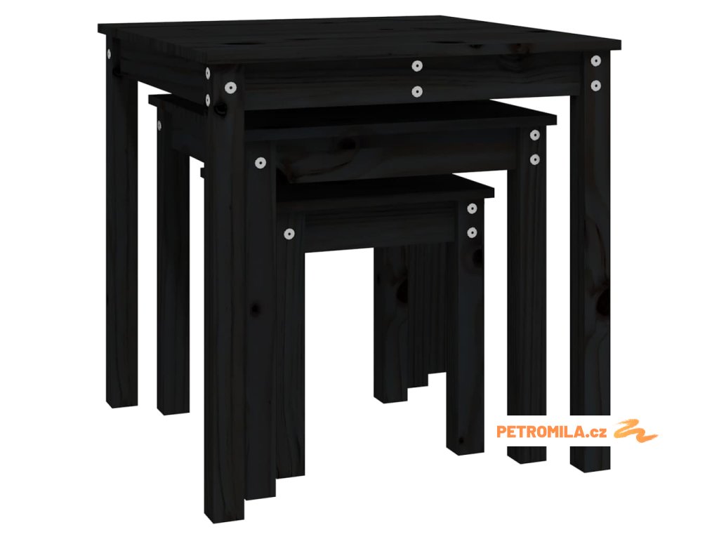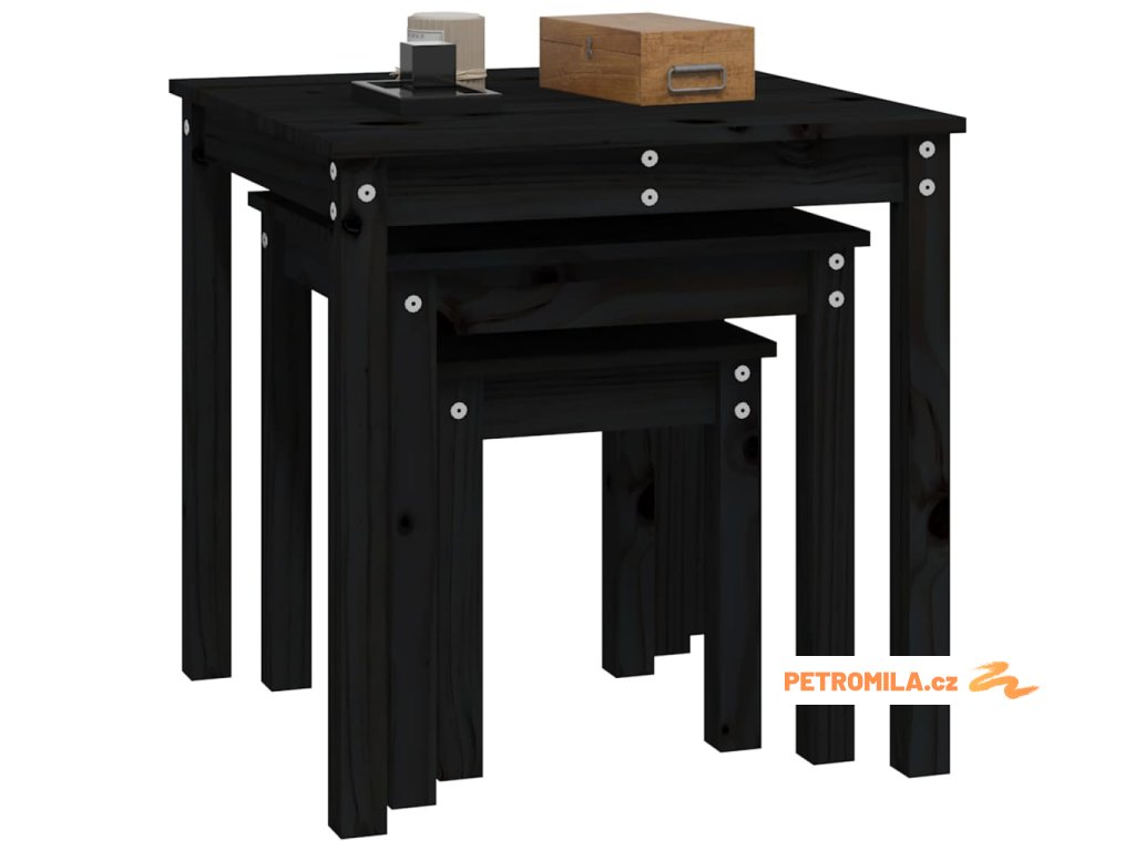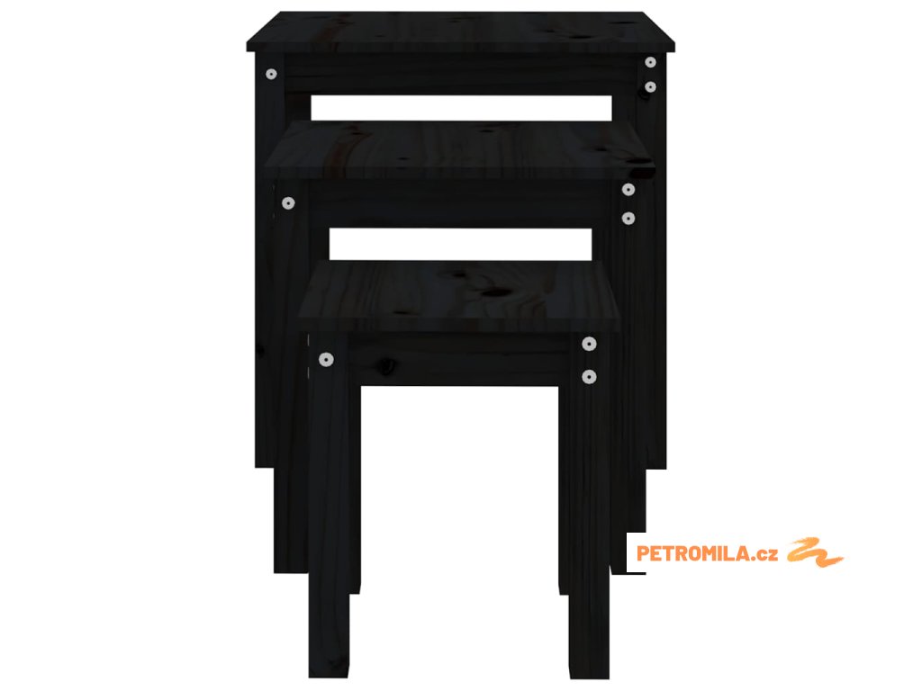 Hnízdové stolky 3 ks černé masivní borové dřevo
