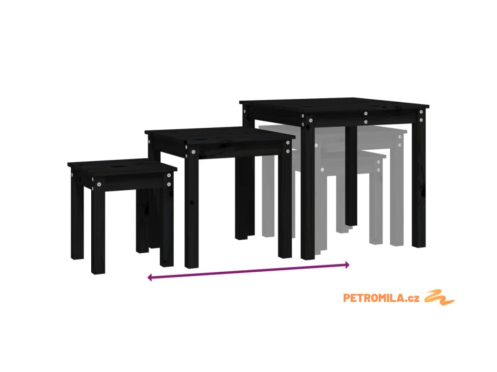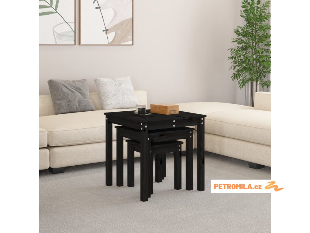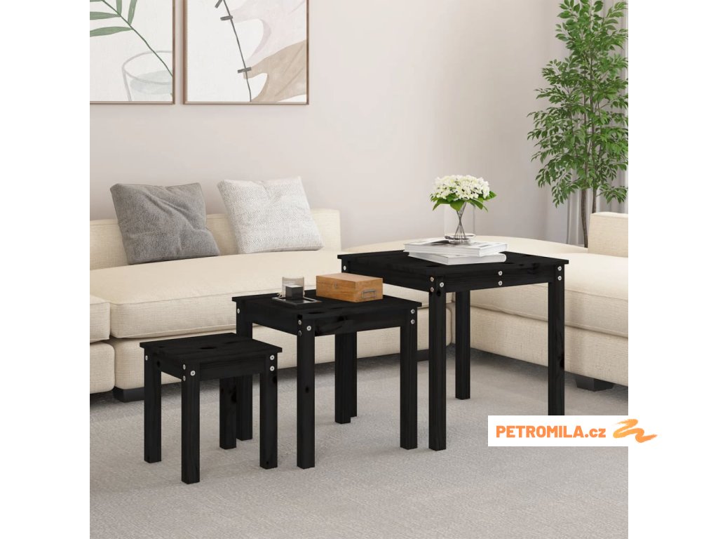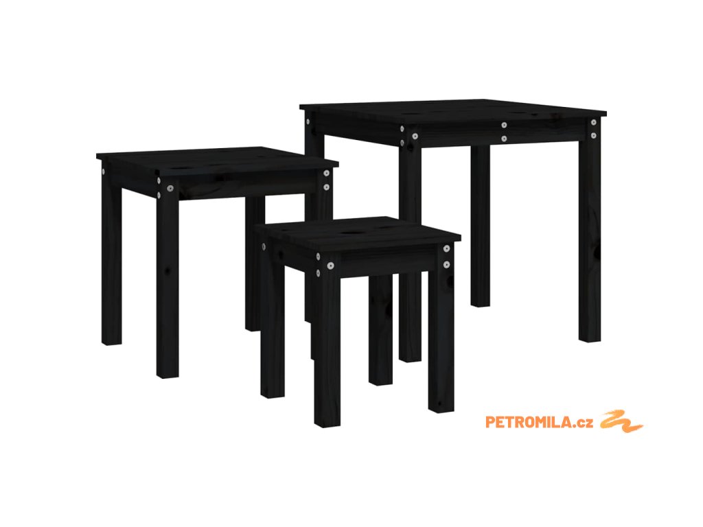 Hnízdové stolky 3 ks černé masivní borové dřevo