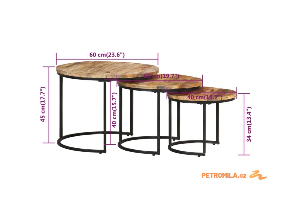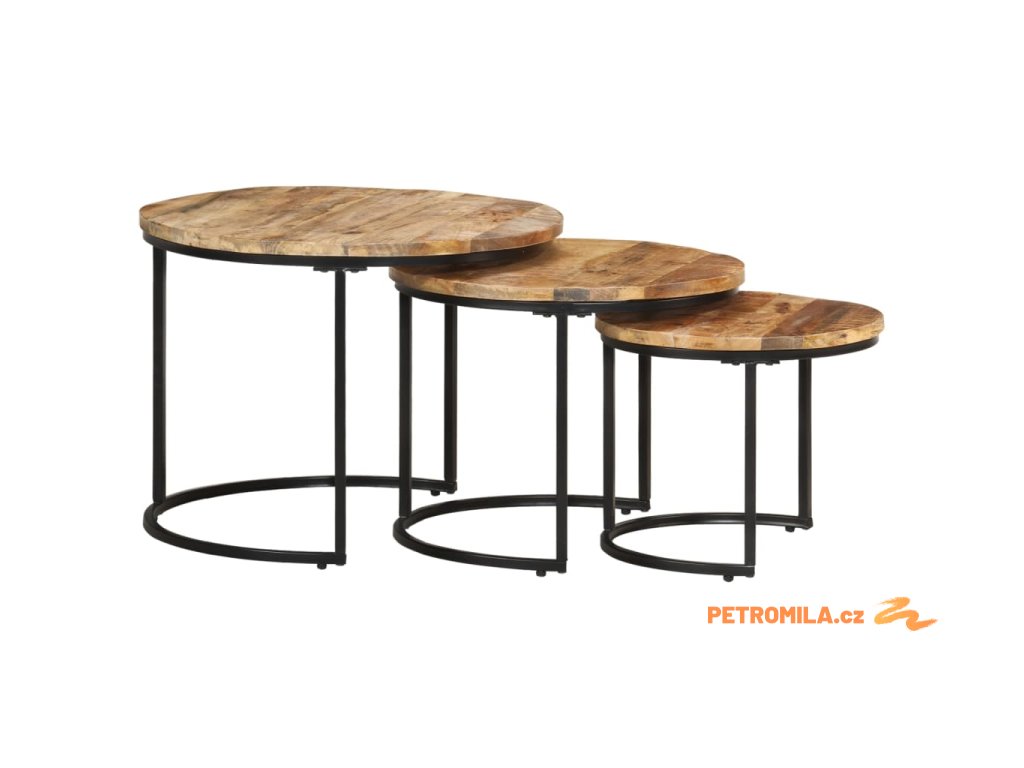 Hnízdové stolky 3 ks hrubé mangovníkové dřevo
