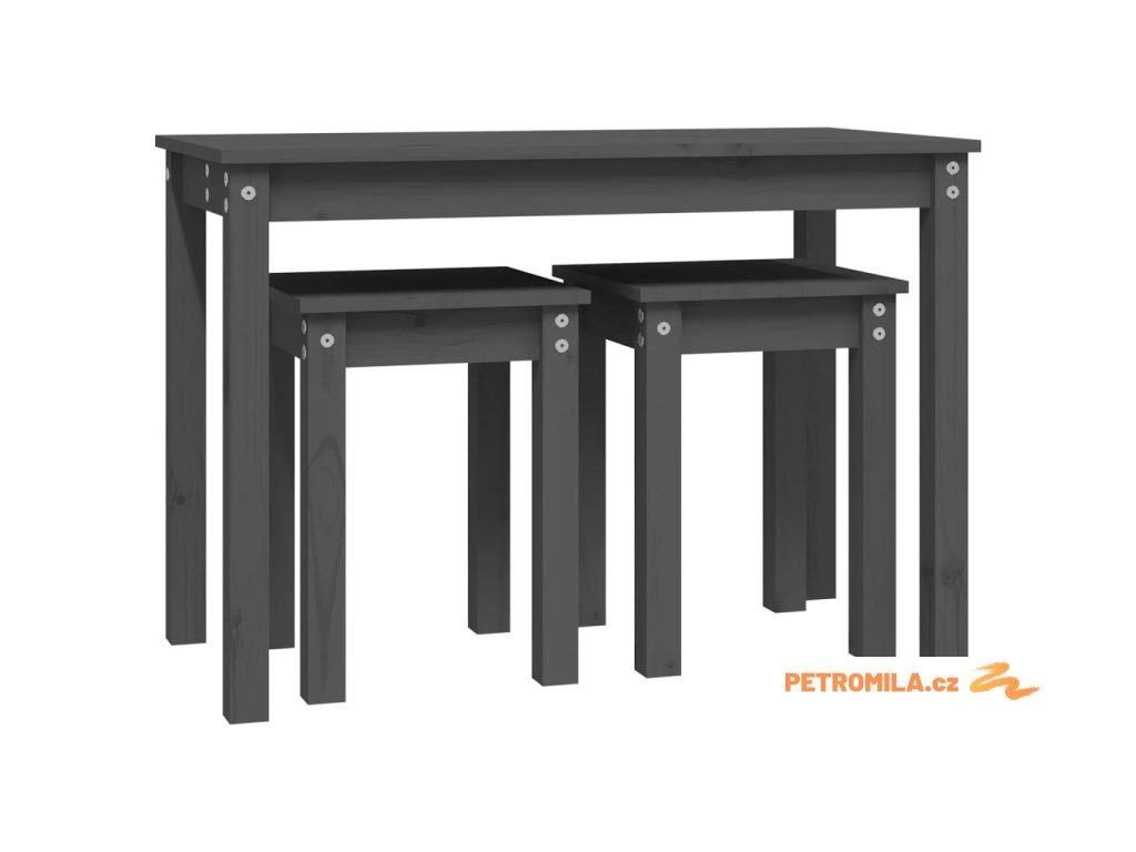 Hnízdové stolky 3 ks šedé masivní borové dřevo